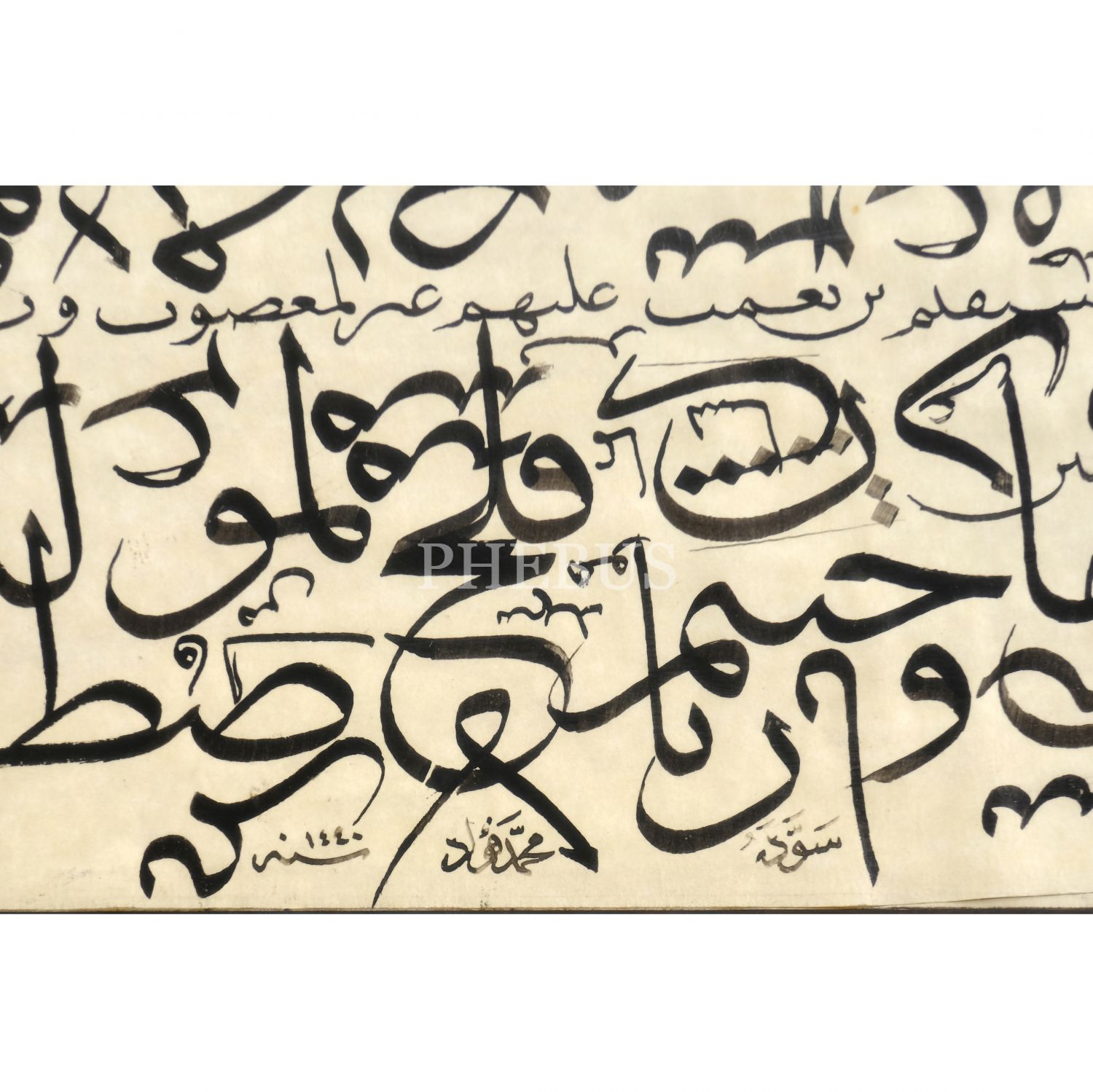 Fuad (Başar) ketebeli sülüs-nesih karalama, 1440 tarihli, yazı ölçü: 18x14 cm, çerçeve içi ölçü: 37x33 cm...