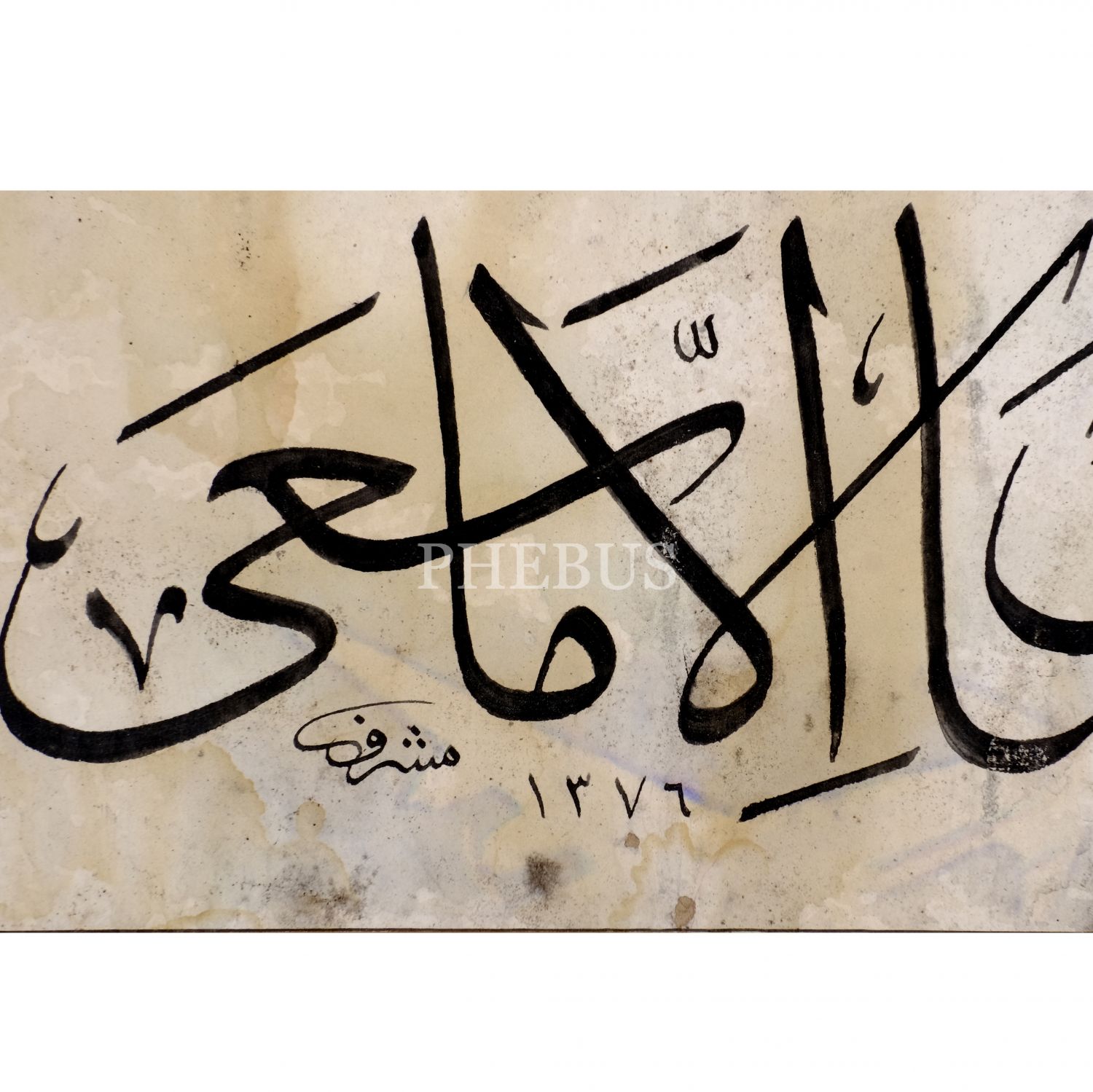 Müşerref (Çelebi) ketebeli celî sülüs âyet, 1376 tarihli, yazı ölçü: 35x11 cm, mukavva ölçü: 45x22 cm...
