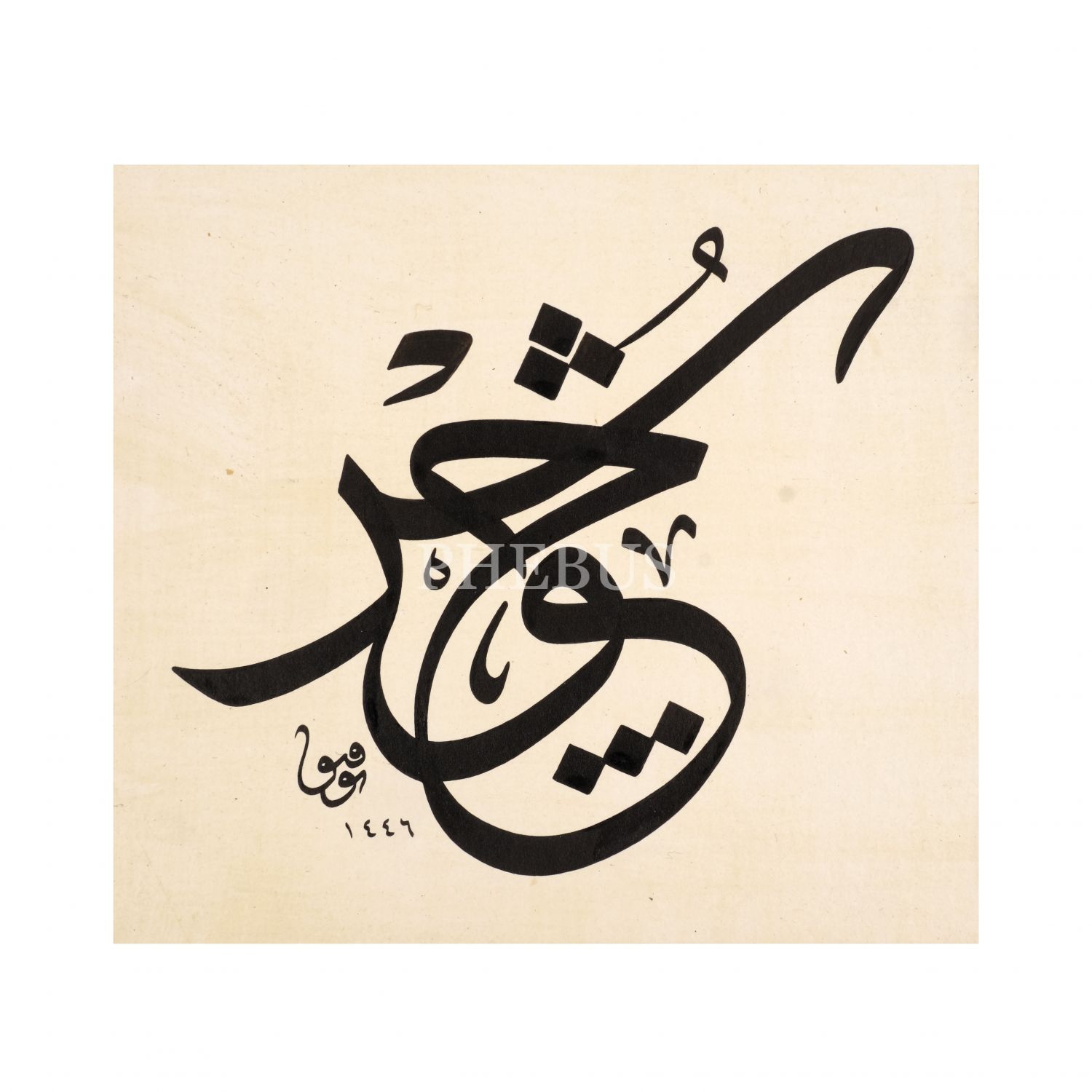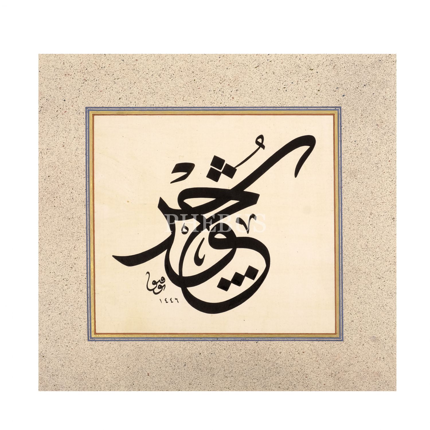 Tevfik ketebeli celî sülüs istif yazı, 1446 tarihli, yazı ölçü: 22x20 cm, mukavva ölçü: 36x34 cm...