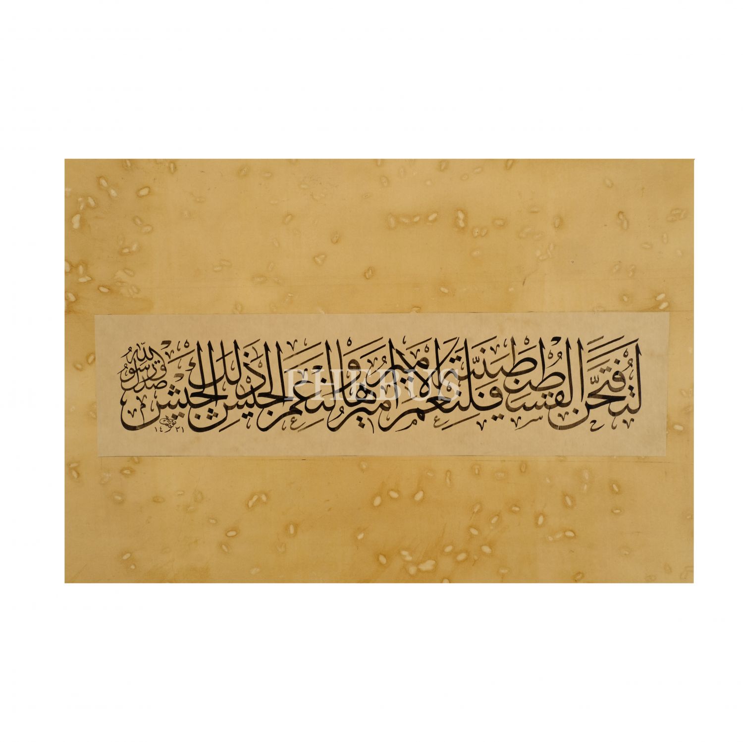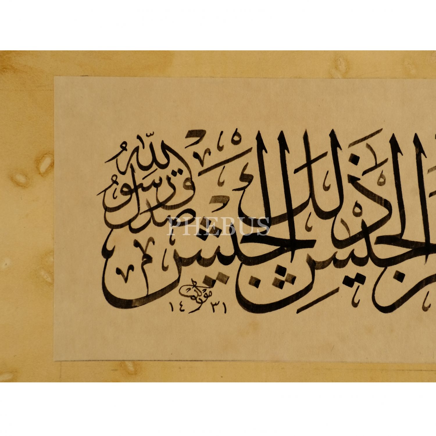 Mevlüd (Beşir) ketebeli sülüs hadis-i şerif: 1431 tarihli, yazı ölçü: 34x9 cm, mukavva ölçü: 70x46 cm...