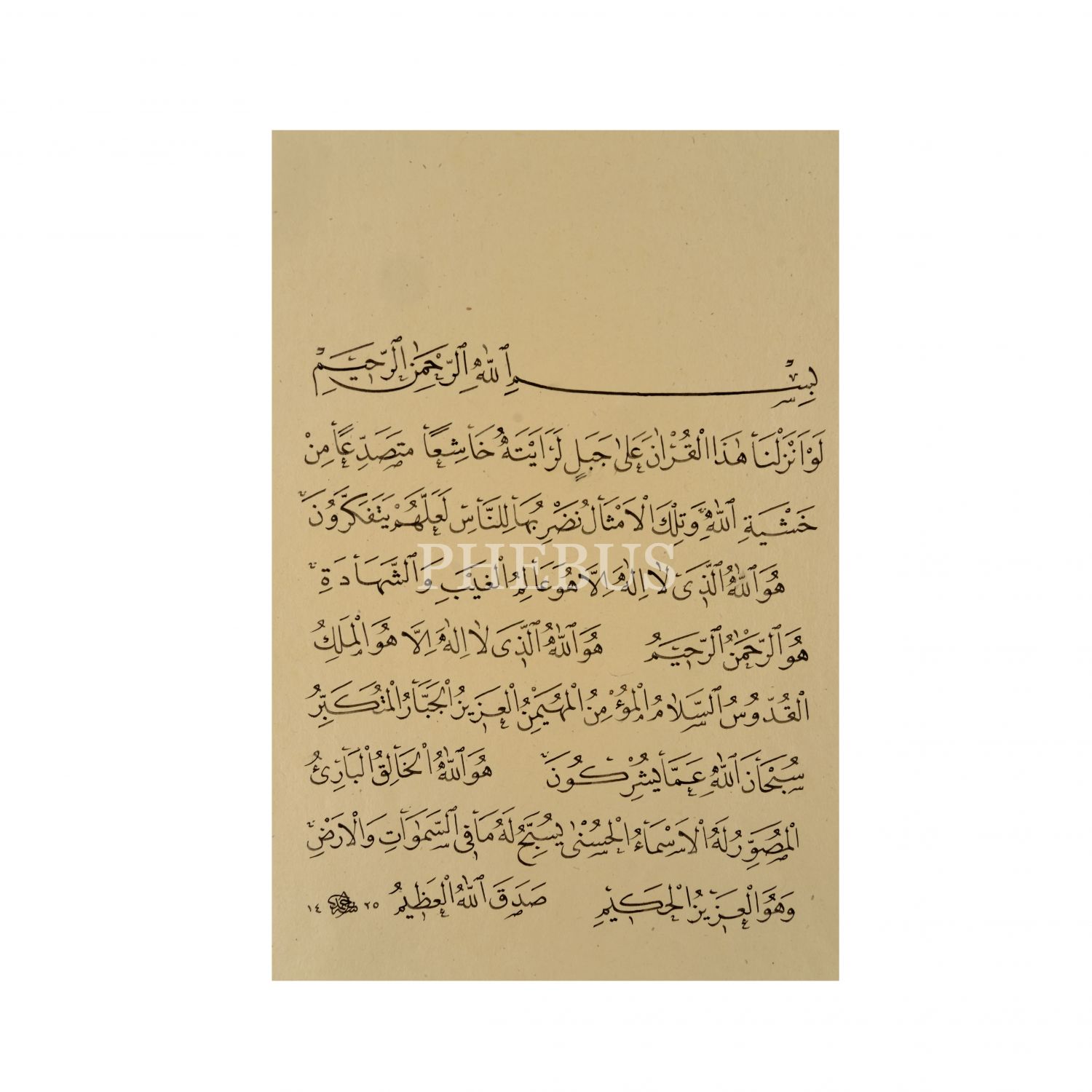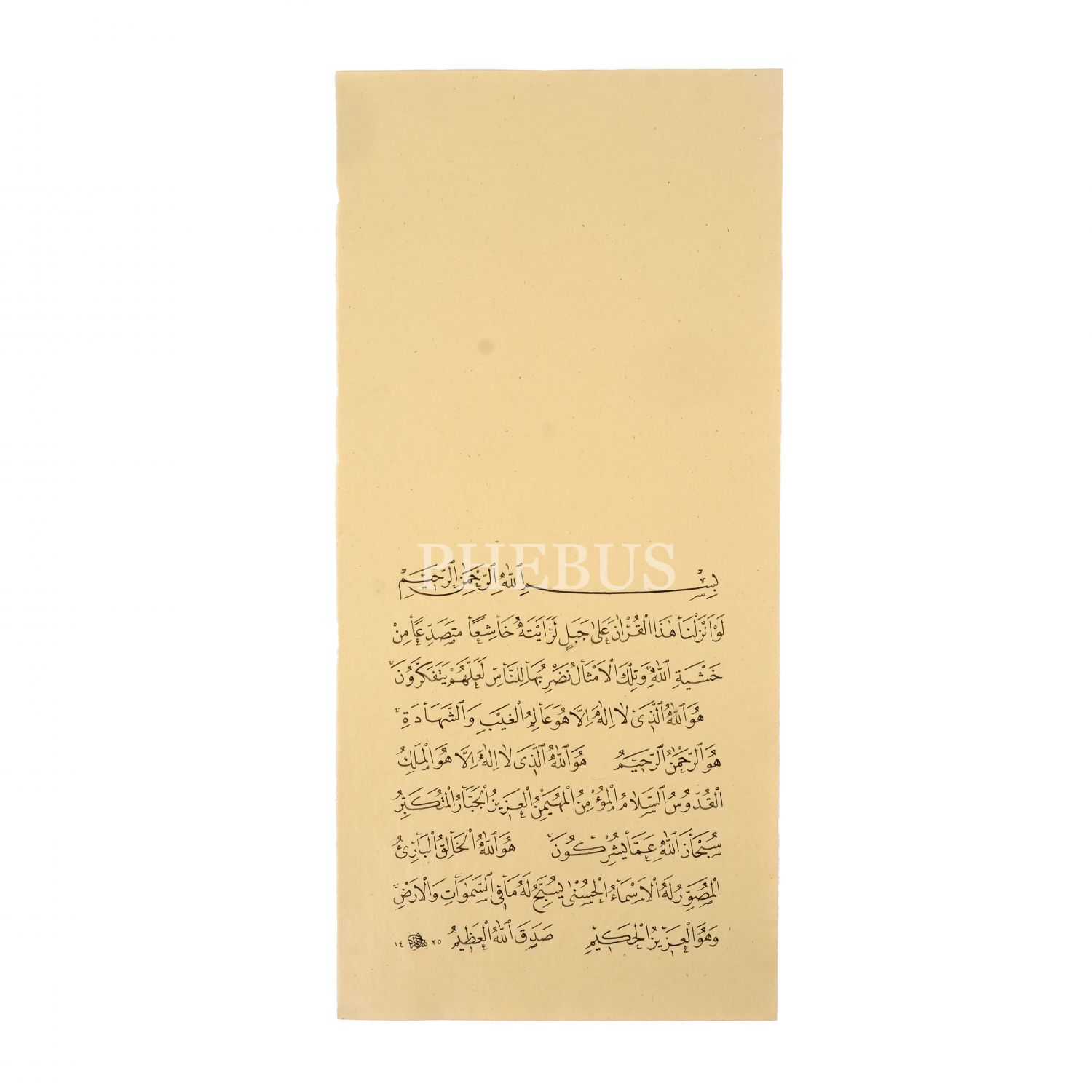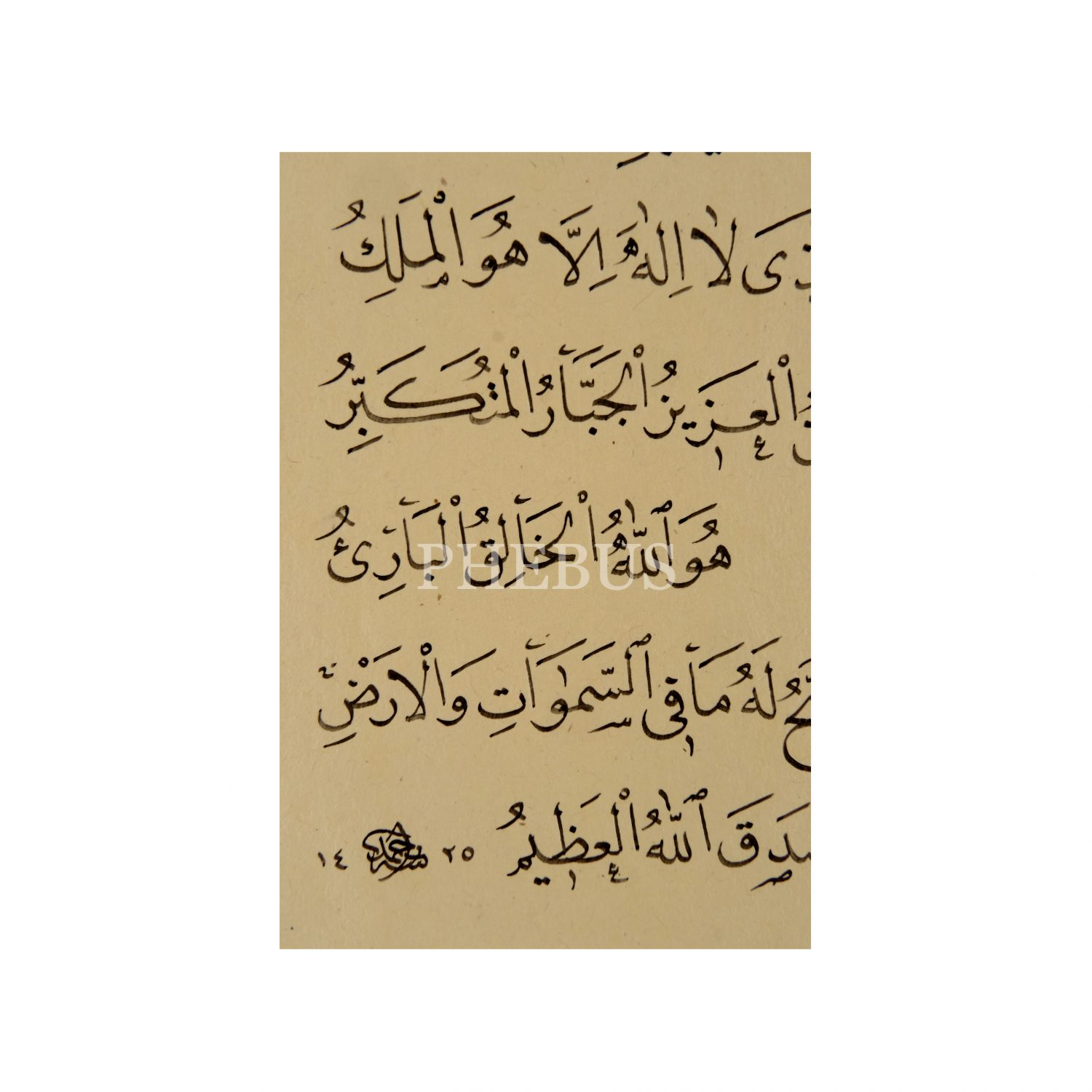 Ahmed ketebeli nesih yazıyla Haşr Suresi 59-63. âyetler, 1425 tarihli, kağıt ölçü: 24x45 cm...