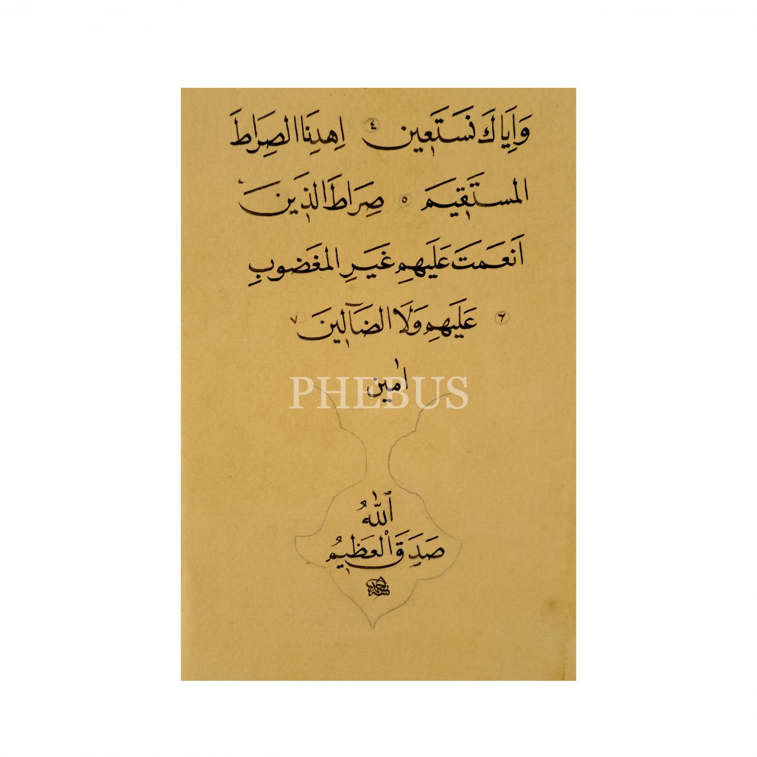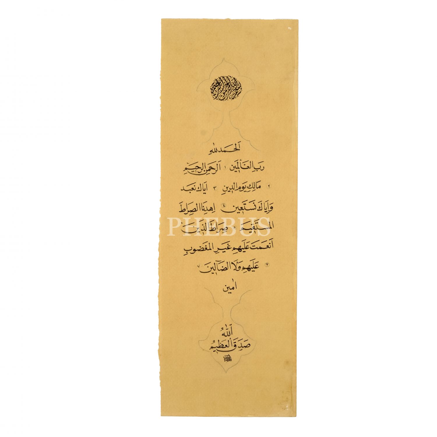 Ahmed ketebeli divanî-nesih Fatiha Suresi, kağıt ölçü: 13x38 cm...