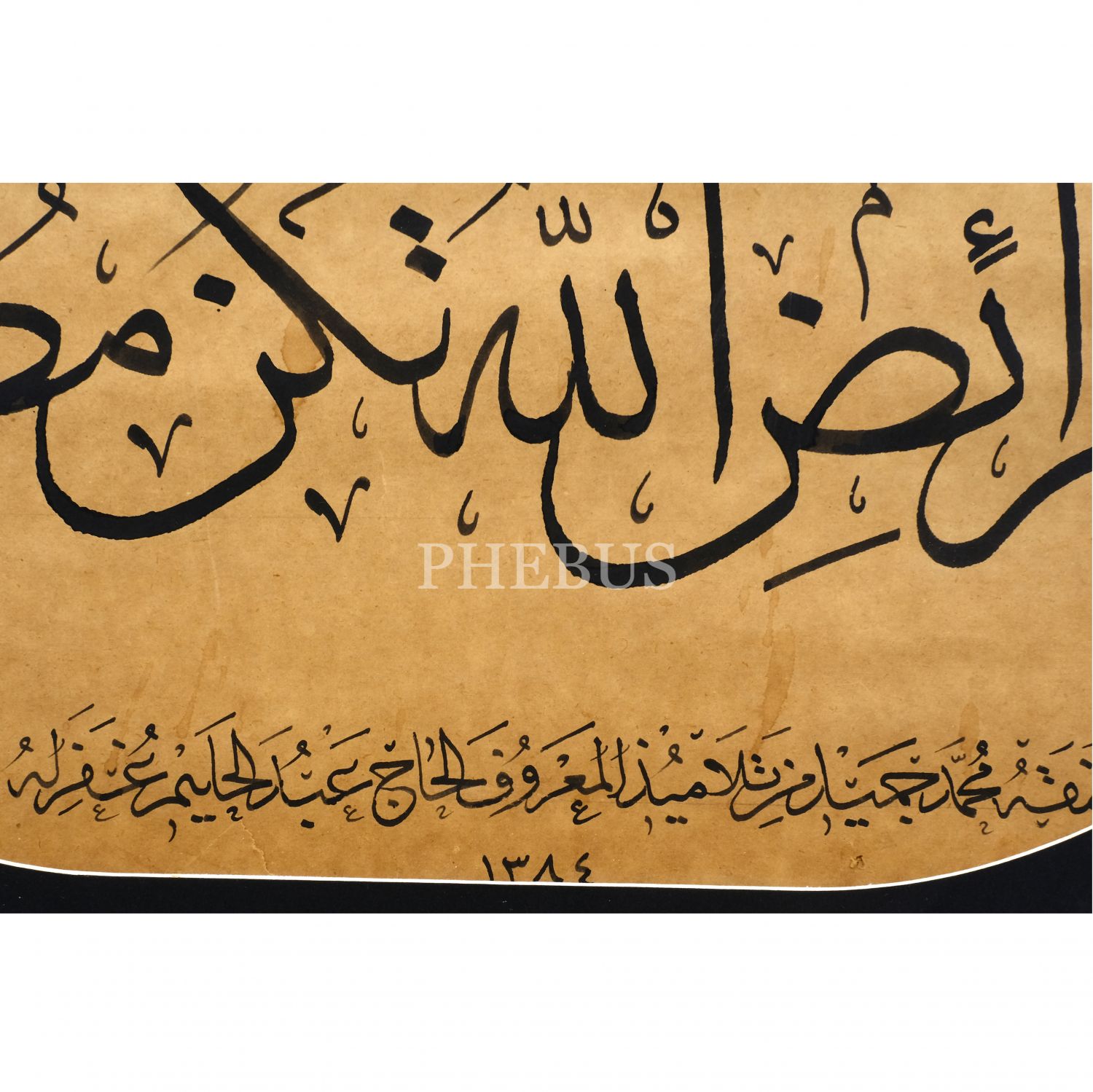 Cemil ketebeli celî sülüs hadis-i şerif, 1384 tarihli, yazı ölçü: 46x36 cm, paspartu ölçü: 58x48, çerçeve kalınlığı: 8 cm...