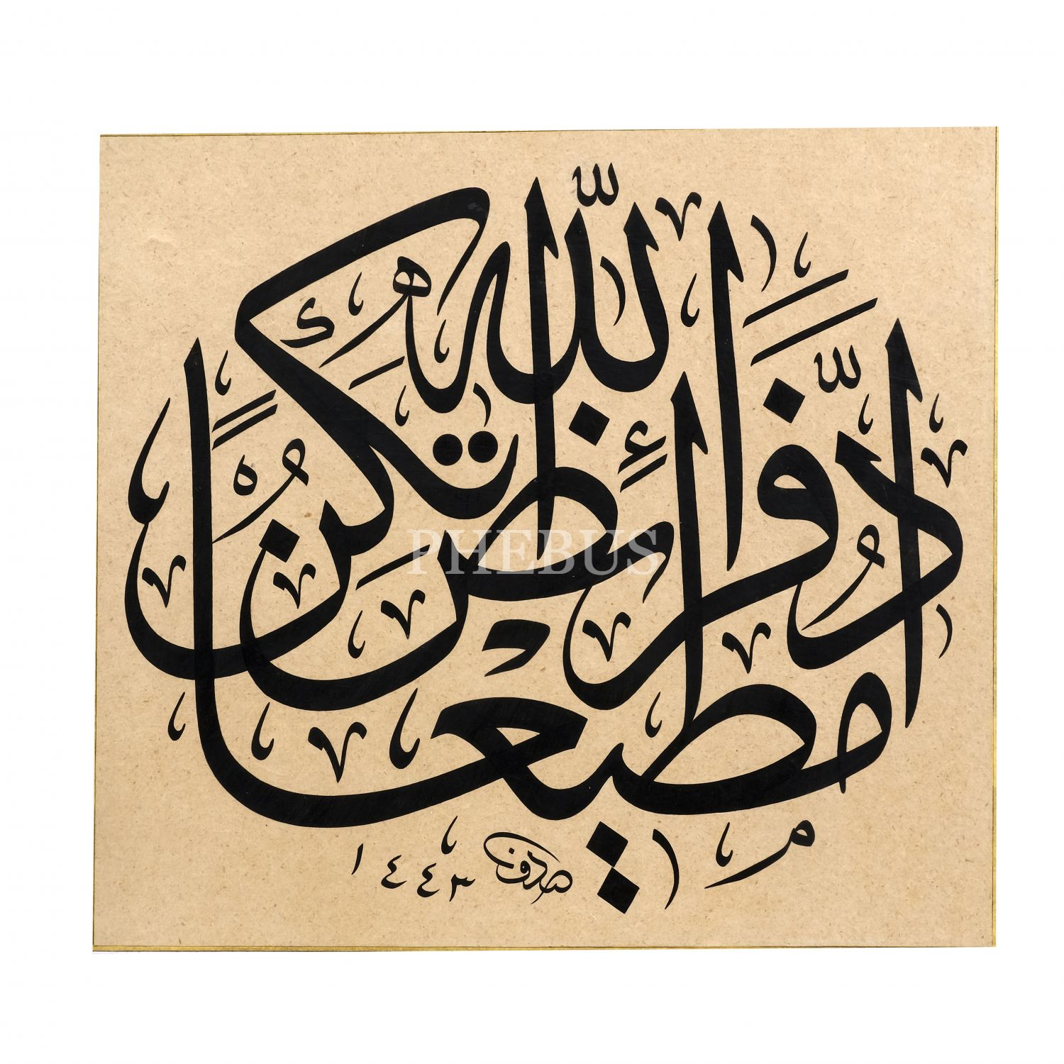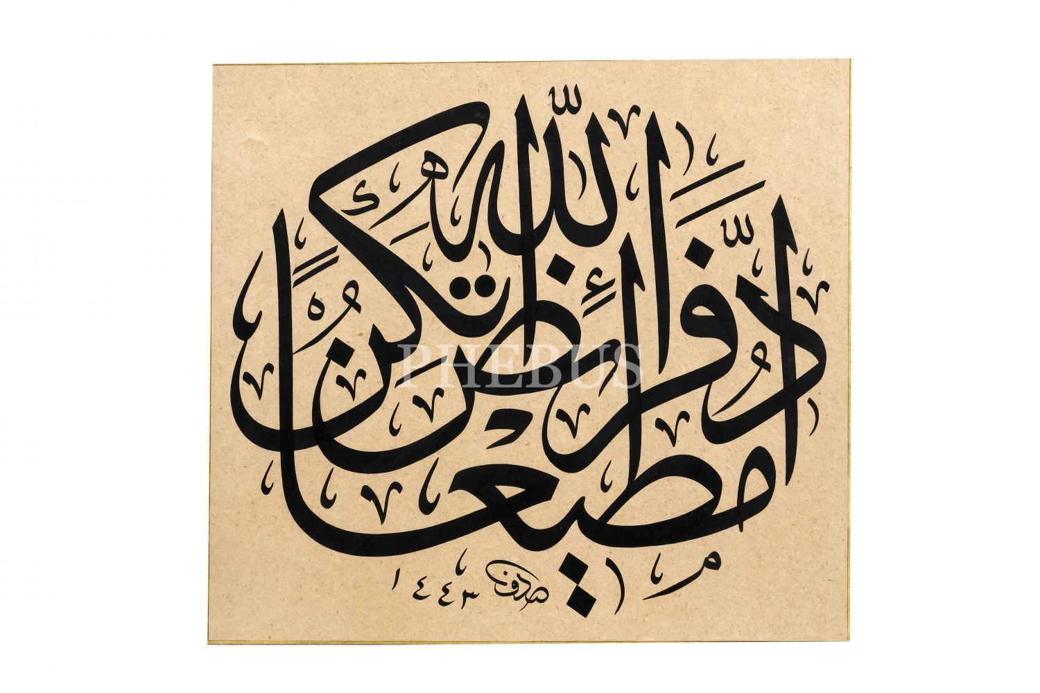 Nazif Bey´in meşhur yazısından naklen yazılmıştır. Okunuşu: "Eddi ferâiza´llâhi tekün mutî´an" Anlamı: "Farzları eda et itaatkâr ol"