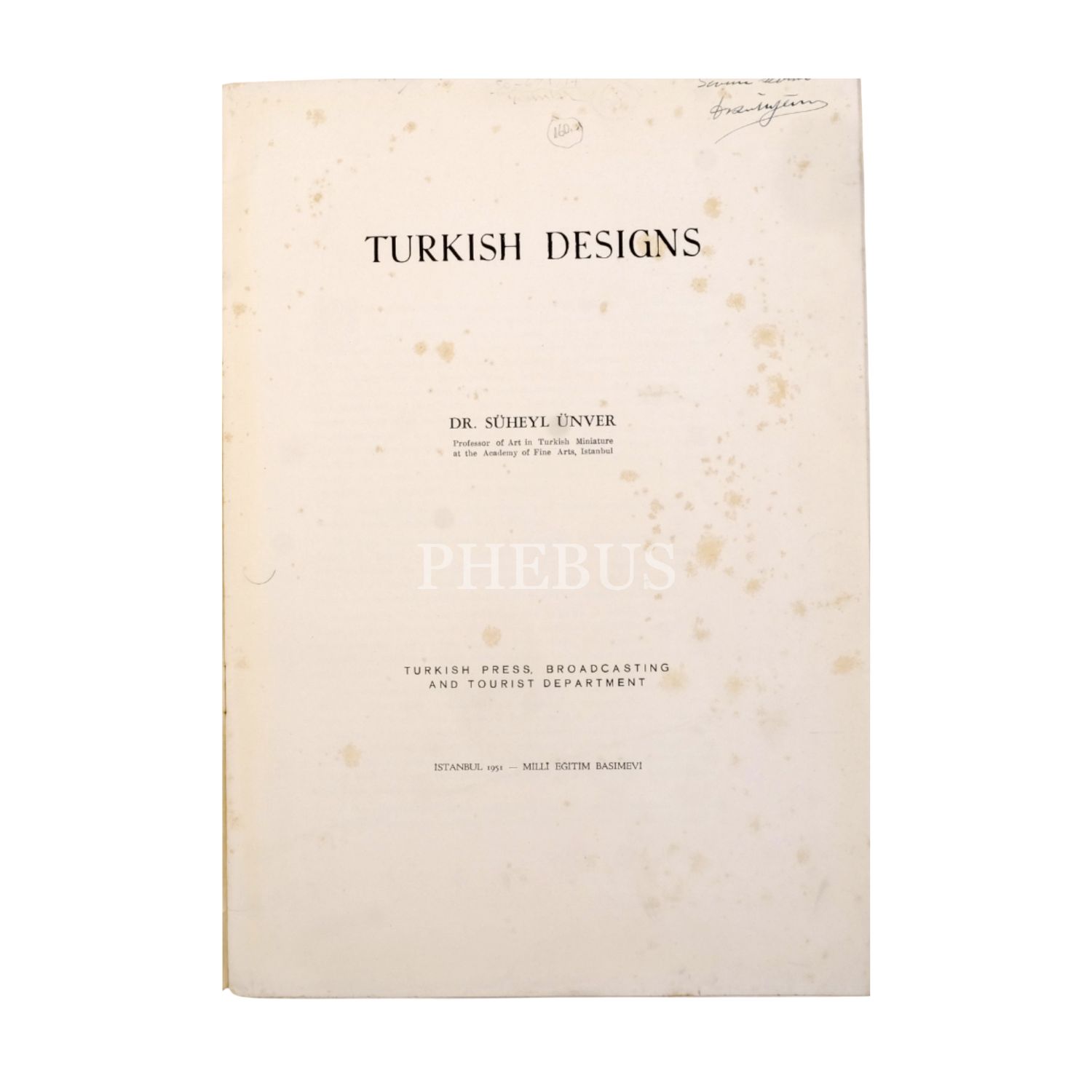 TURKISH DESIGNS, Süheyl Ünver, 1951, Türkiye Basın-Yayın ve Turizm Umum Müdürlüğü, 13 yaprak, 24x35 cm...