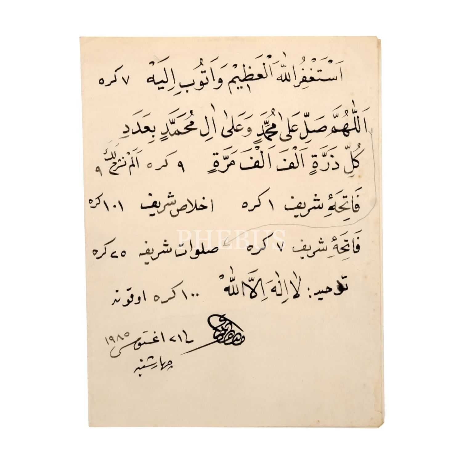 Nesih yazıyla Kâdirî vird dersi, 25x15 cm...