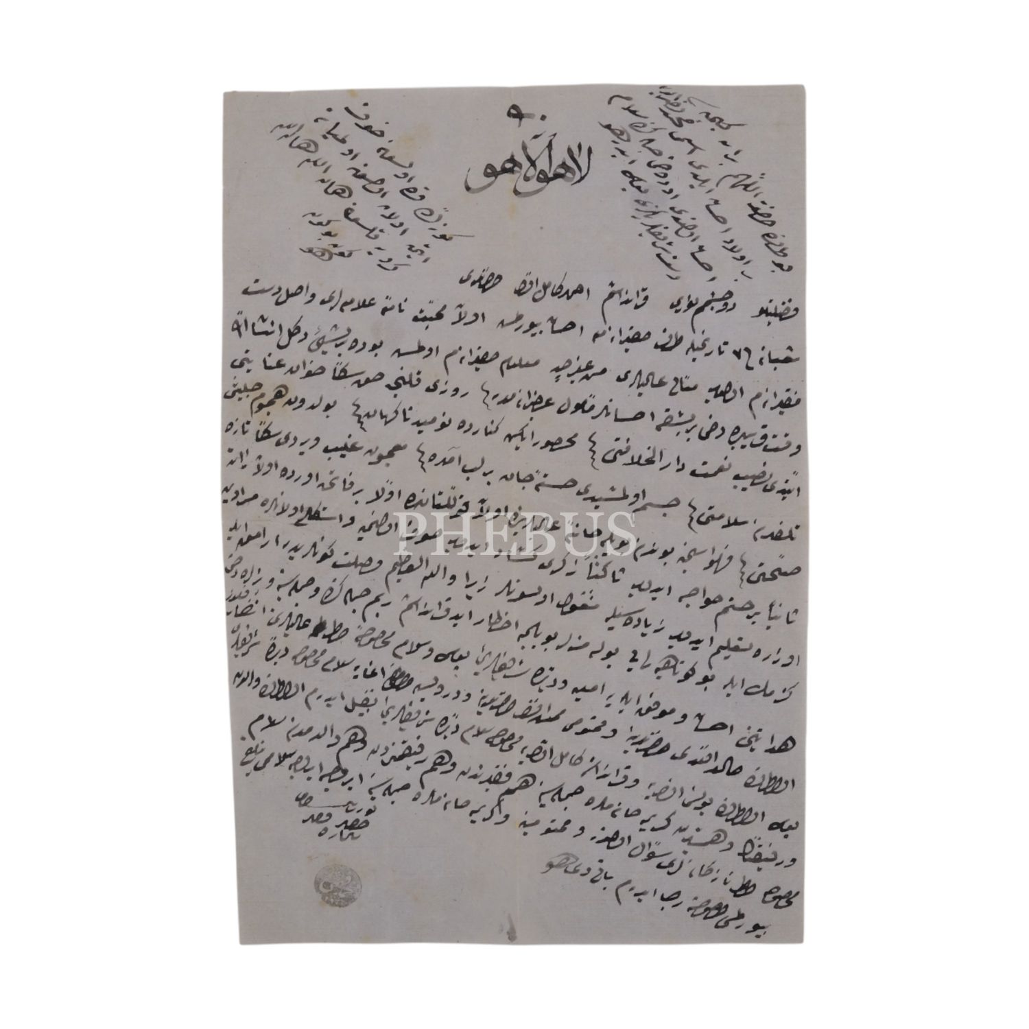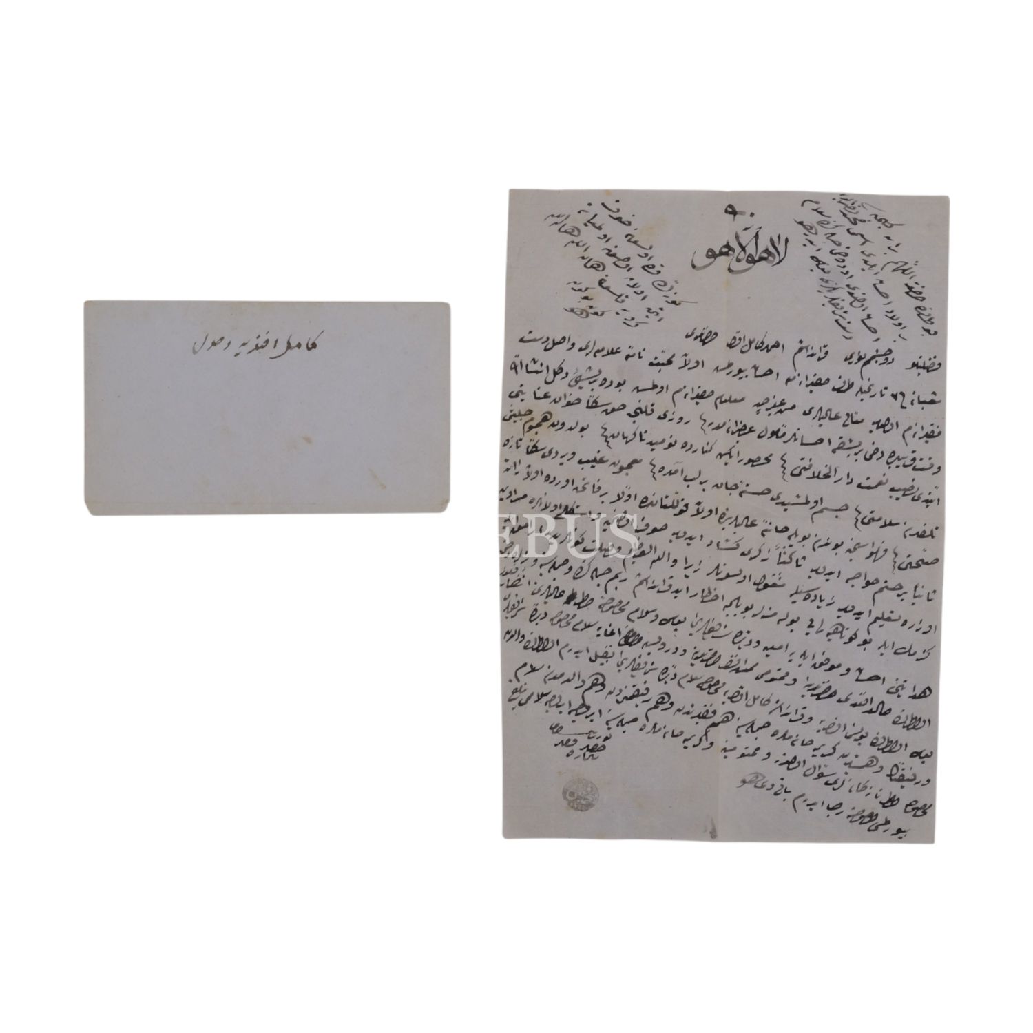 Fatih Karagümrük´teki Şeyh Ahmed Kâmil Efendi´ye Mehmed Fehmi Efendi tarafından yazılmış mektup, zarf ölçü: 14x8 cm, mektup ölçü: 17x25 cm...