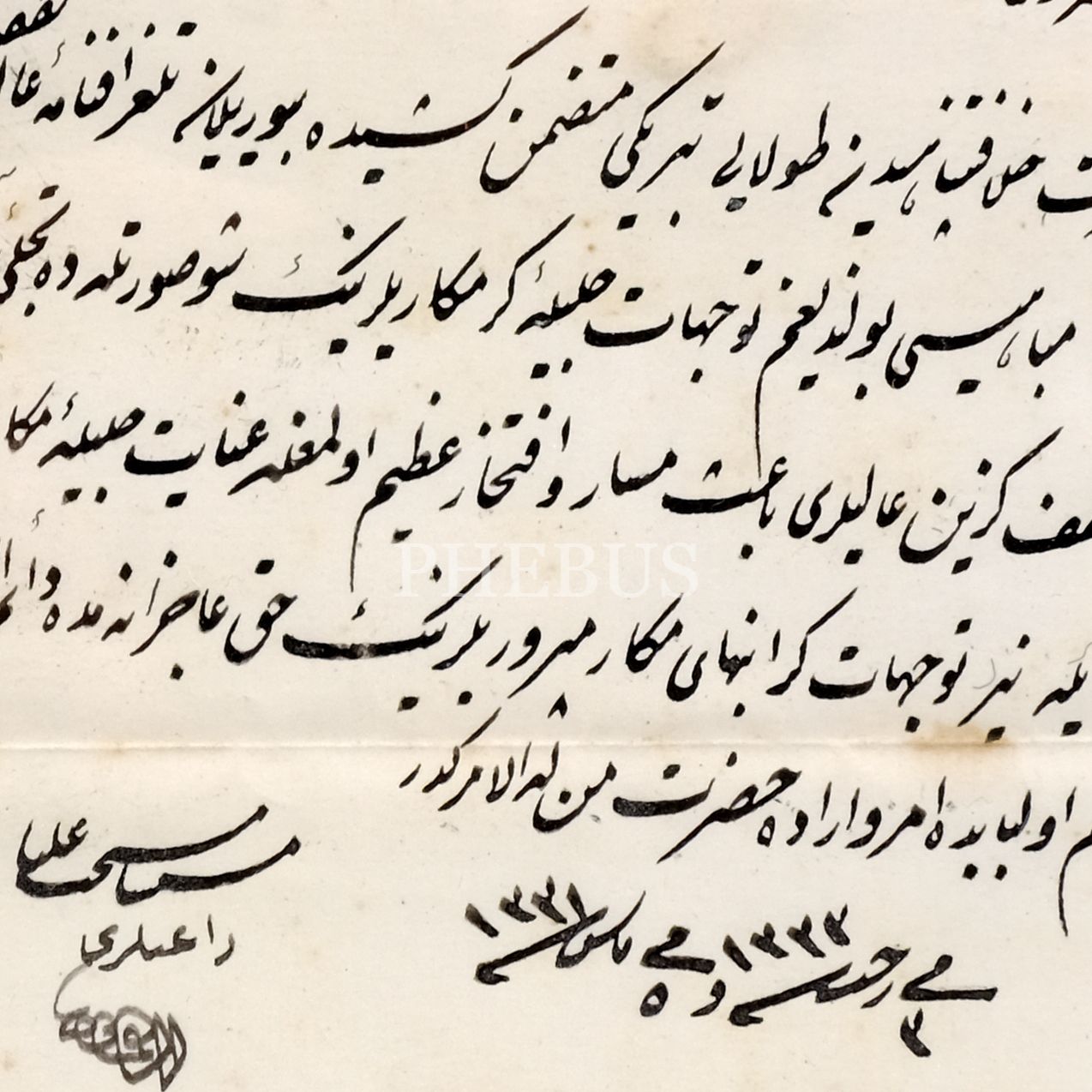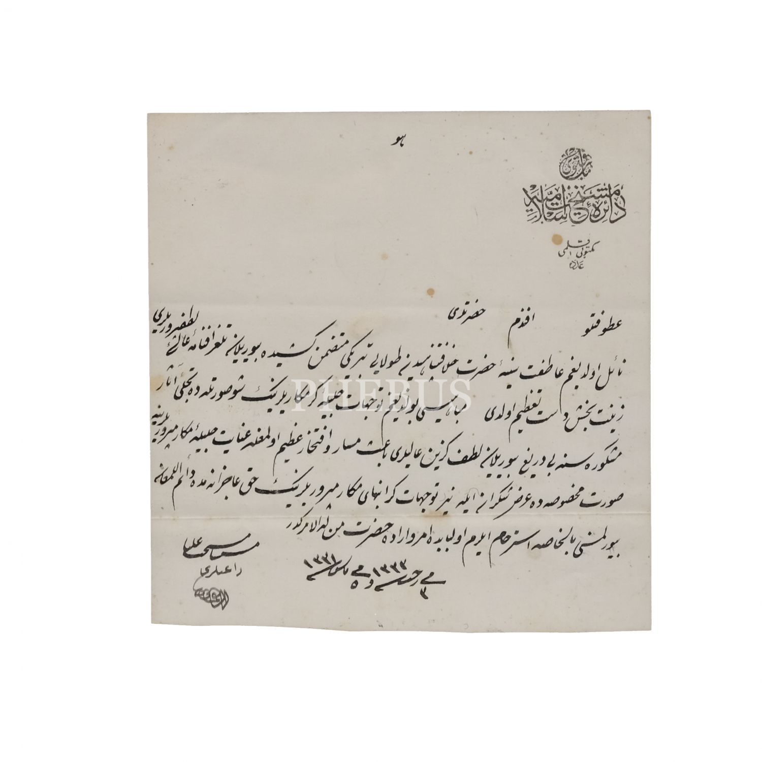 Şeyhülislamlık makamından hilafet makamına teşekkür mahiyetinde yazılan belge, 1333 tarihli, yazı ölçü: 14x15 cm, 18x21 cm...