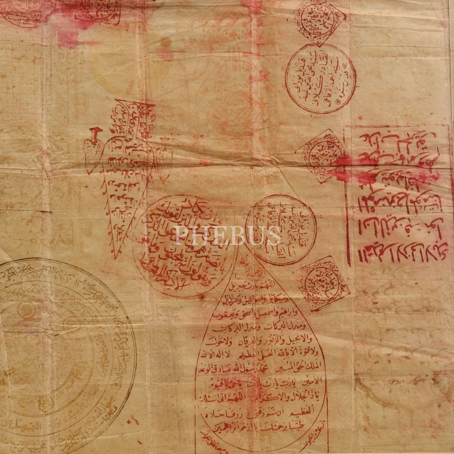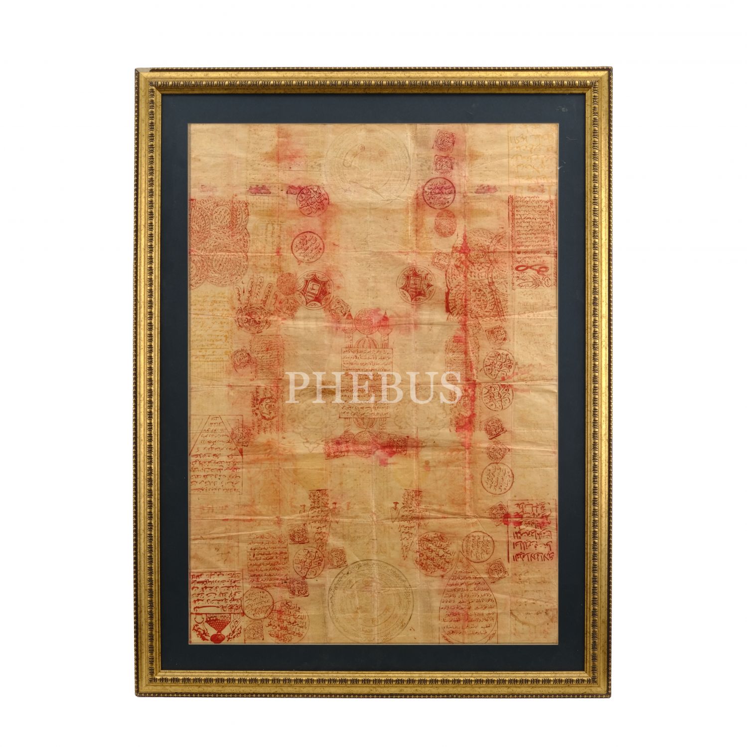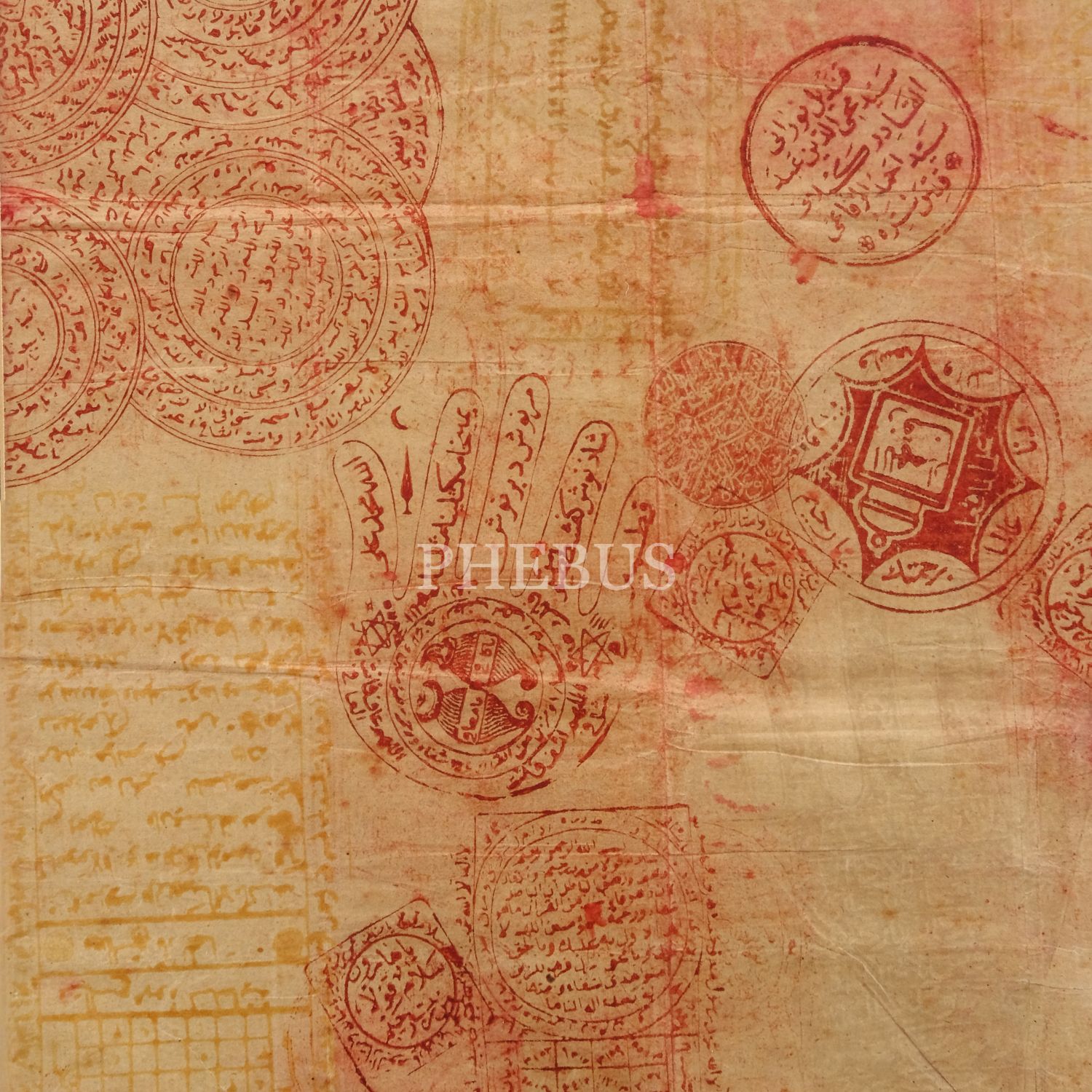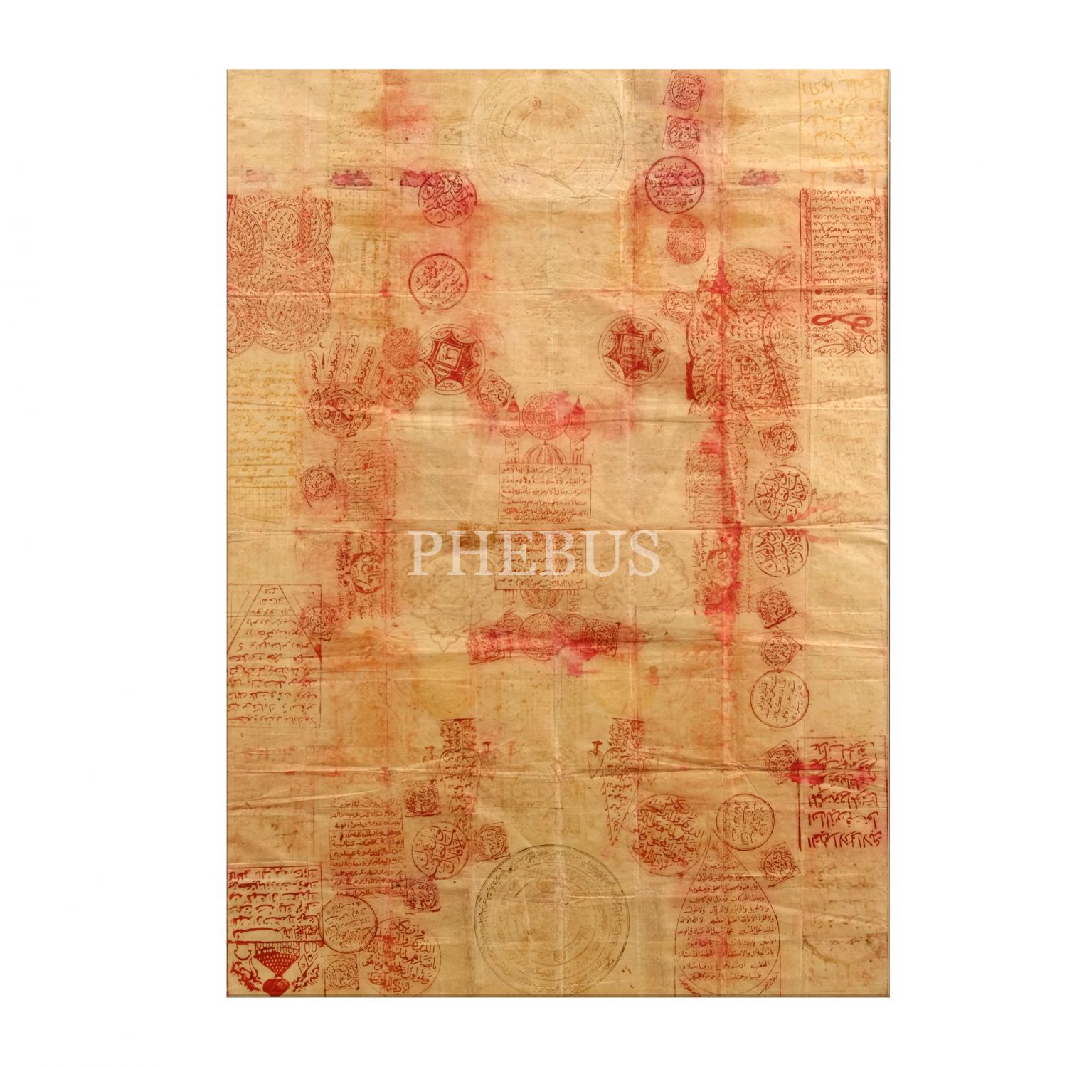Çeşitli vefk ve çizimlerin baskı olarak işlendiği büyük vefk levha, kağıt ölçü: 62x88 cm, paspartu ölçü: 71x98 cm...
