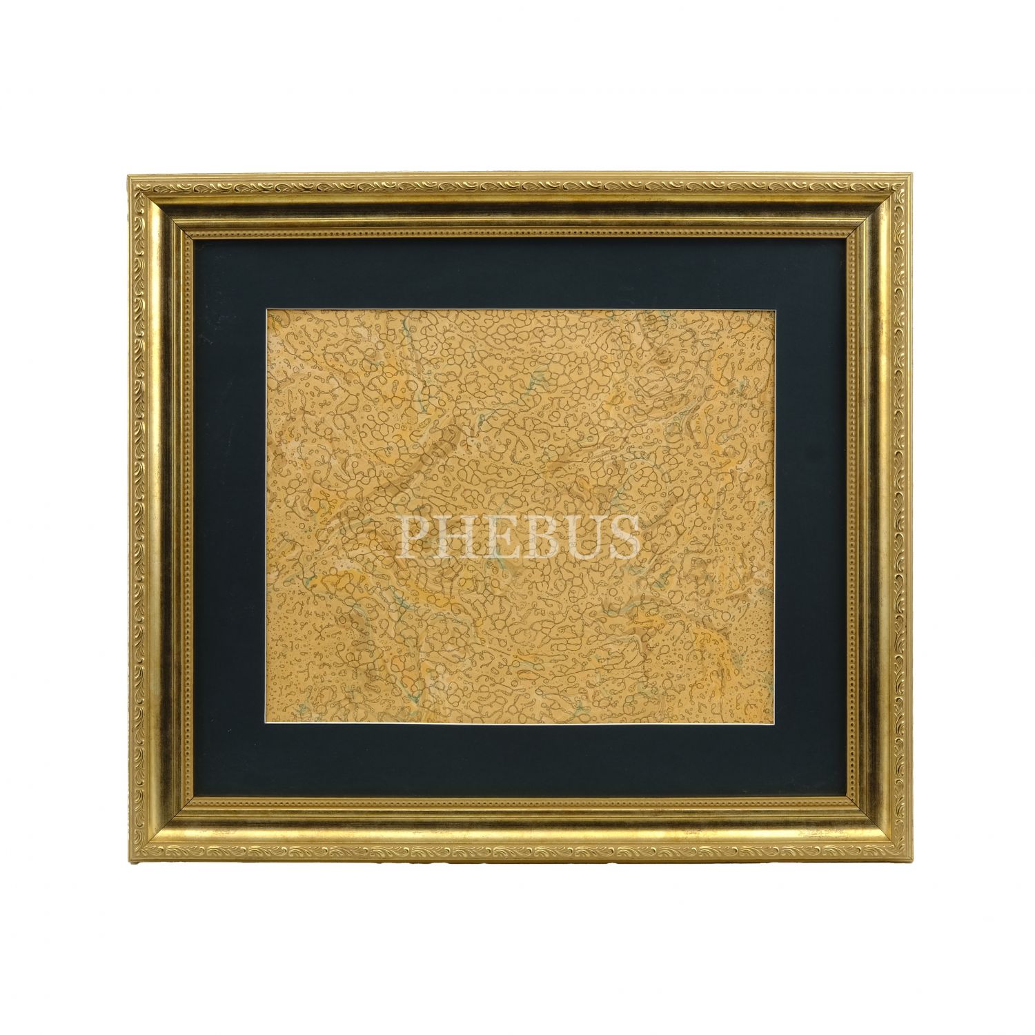 Nusret Hepgül, Şal ebru üstüne kumlu ebru, ebru ölçü: 30x38 cm, paspartu ölçü: 42x49 cm...