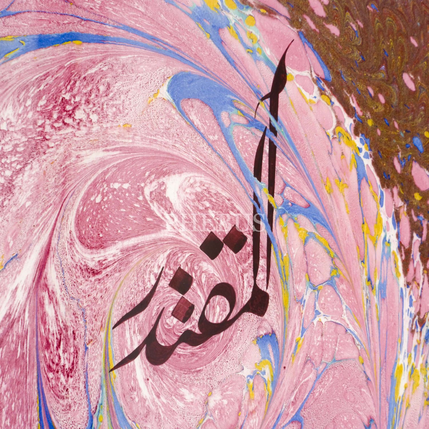 Muhammed (Mağ) ketebeli ebru üzeri talik yazı, 1441 tarihli, ebru ölçü: 34x49 cm...