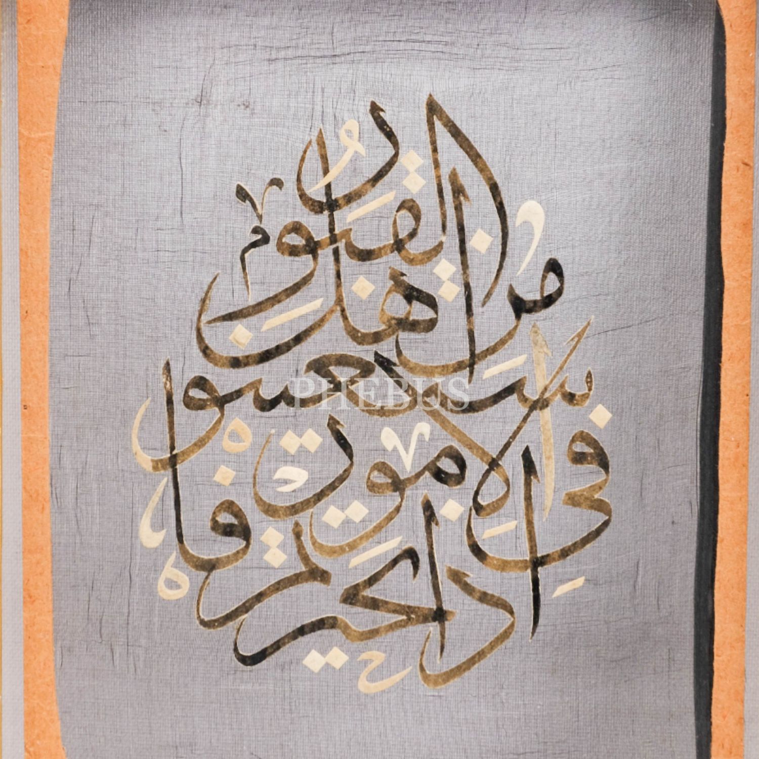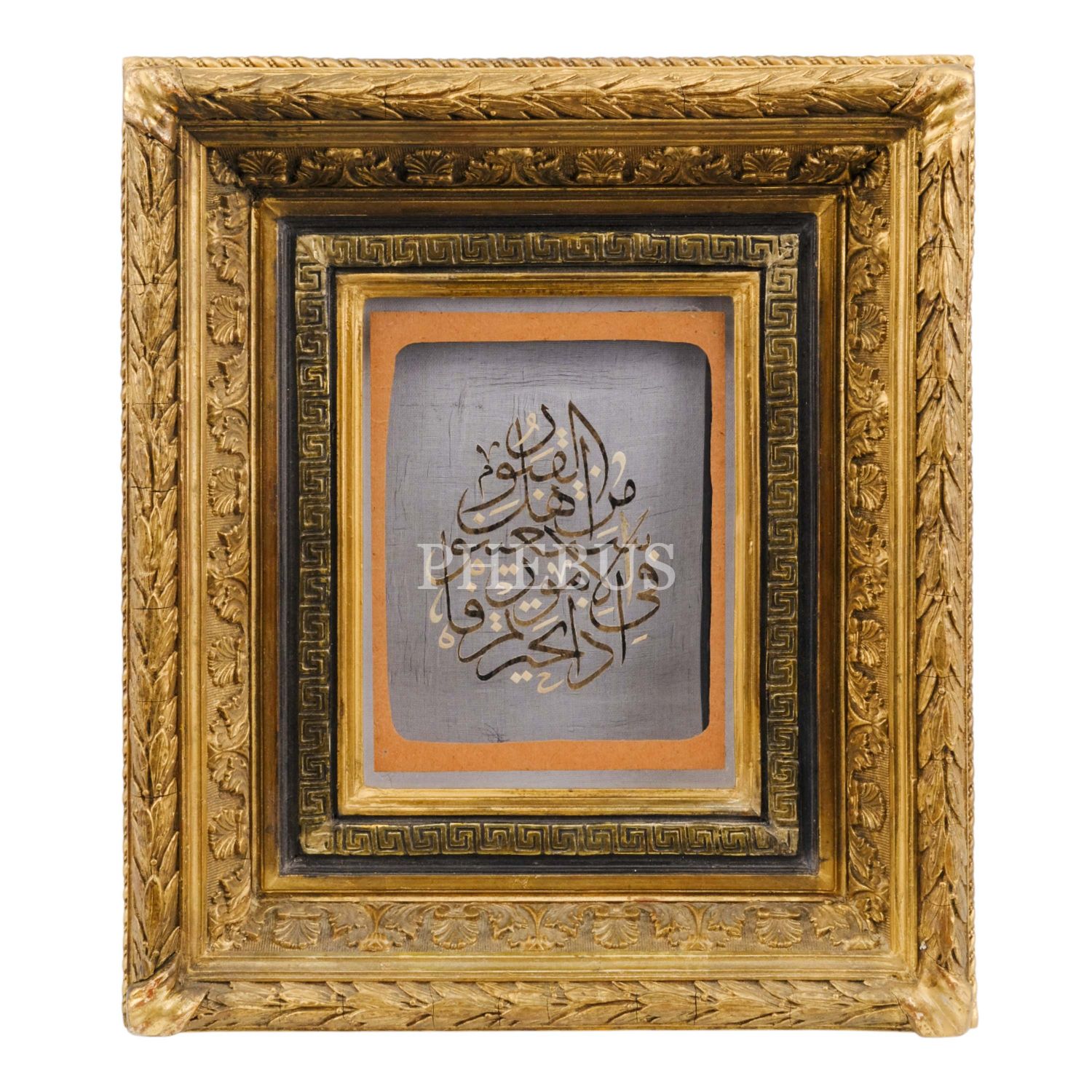 İpek üzerine katı´ tarzı ve dönem çerçevesinde sülüs istif, ipek ölçü: 14x17 cm, çerçeve ölçü: 33x37 cm, çerçeve kalınlığı: 9 cm...