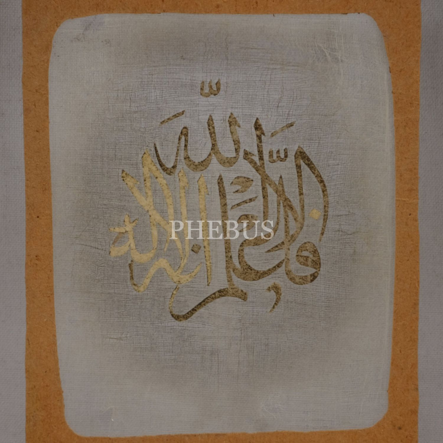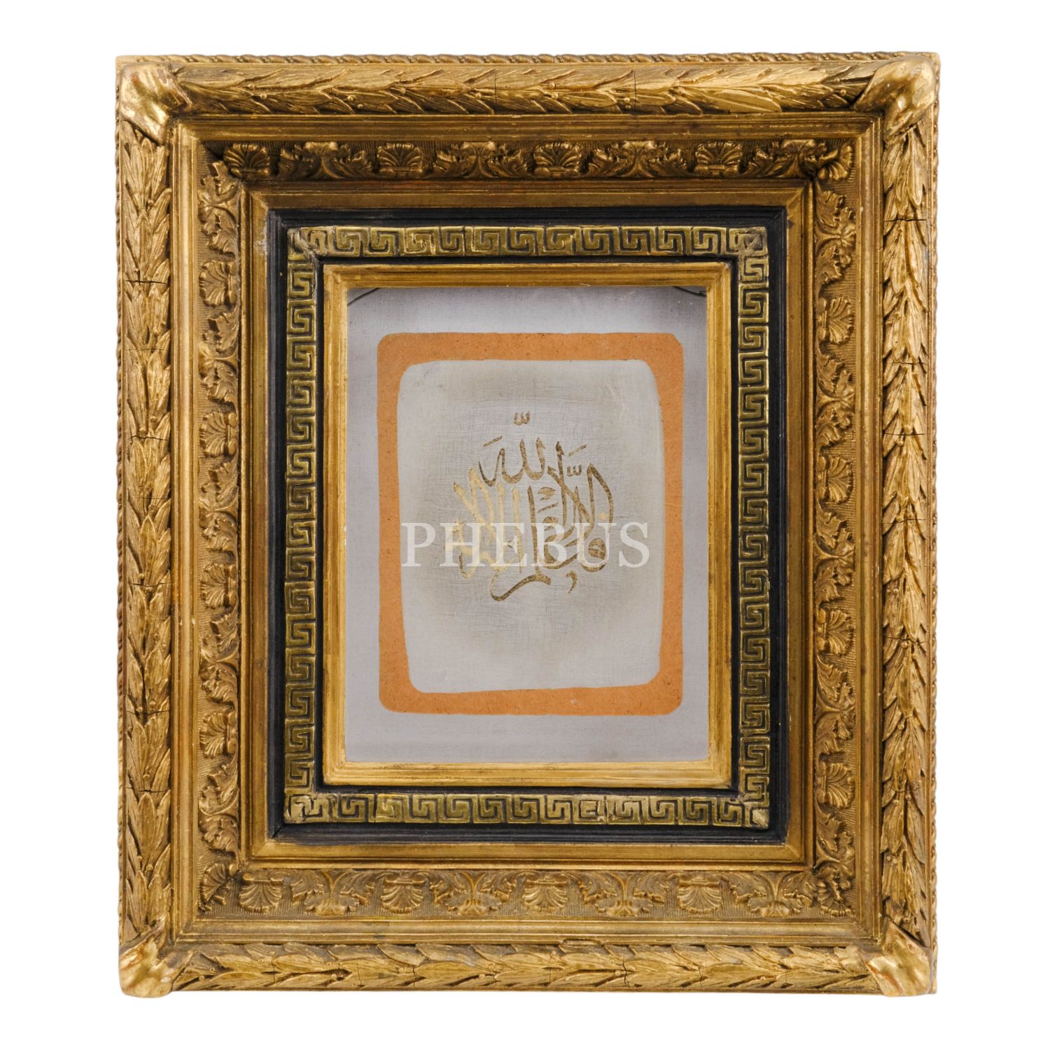 İpek üzerine katı´ tarzı ve dönem çerçevesinde sülüs istif, ipek ölçü: 12x15 cm, çerçeve ölçü: 33x37 cm, çerçeve kalınlığı: 9 cm...