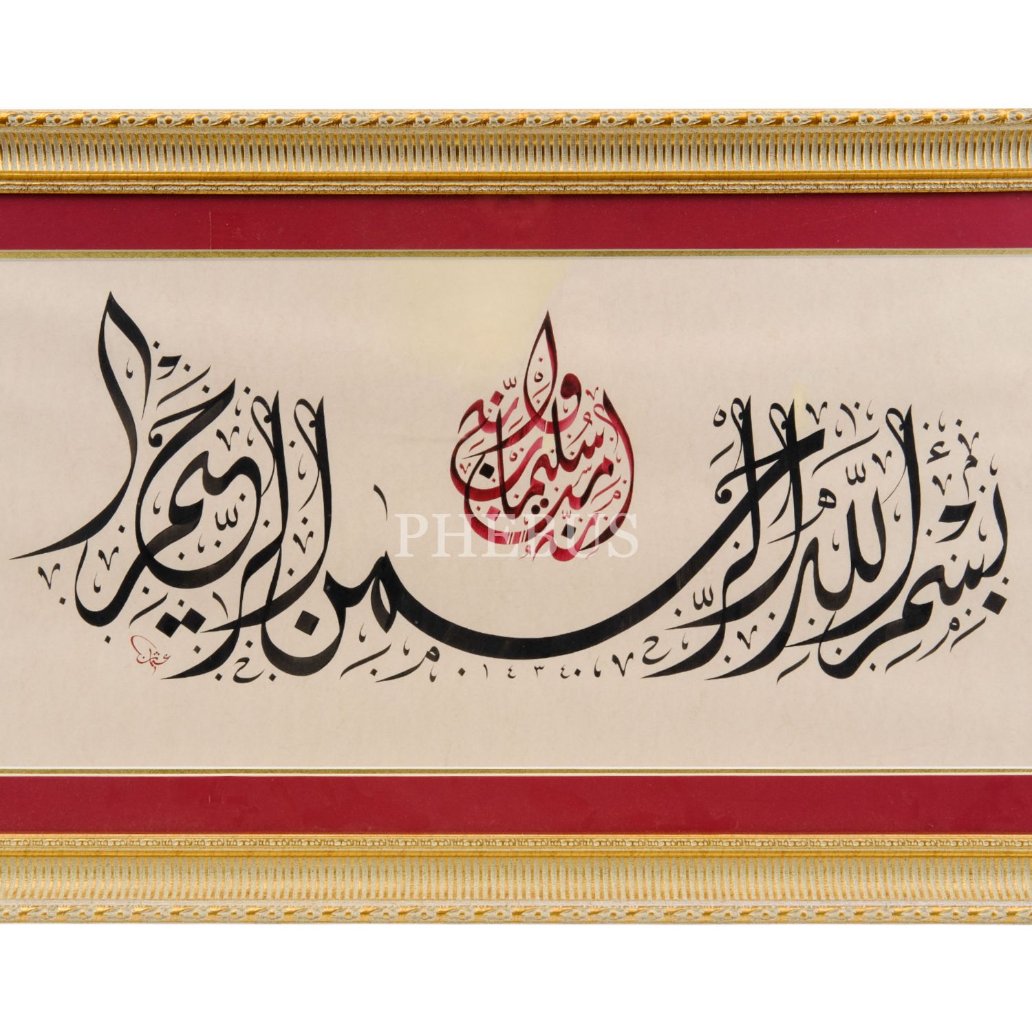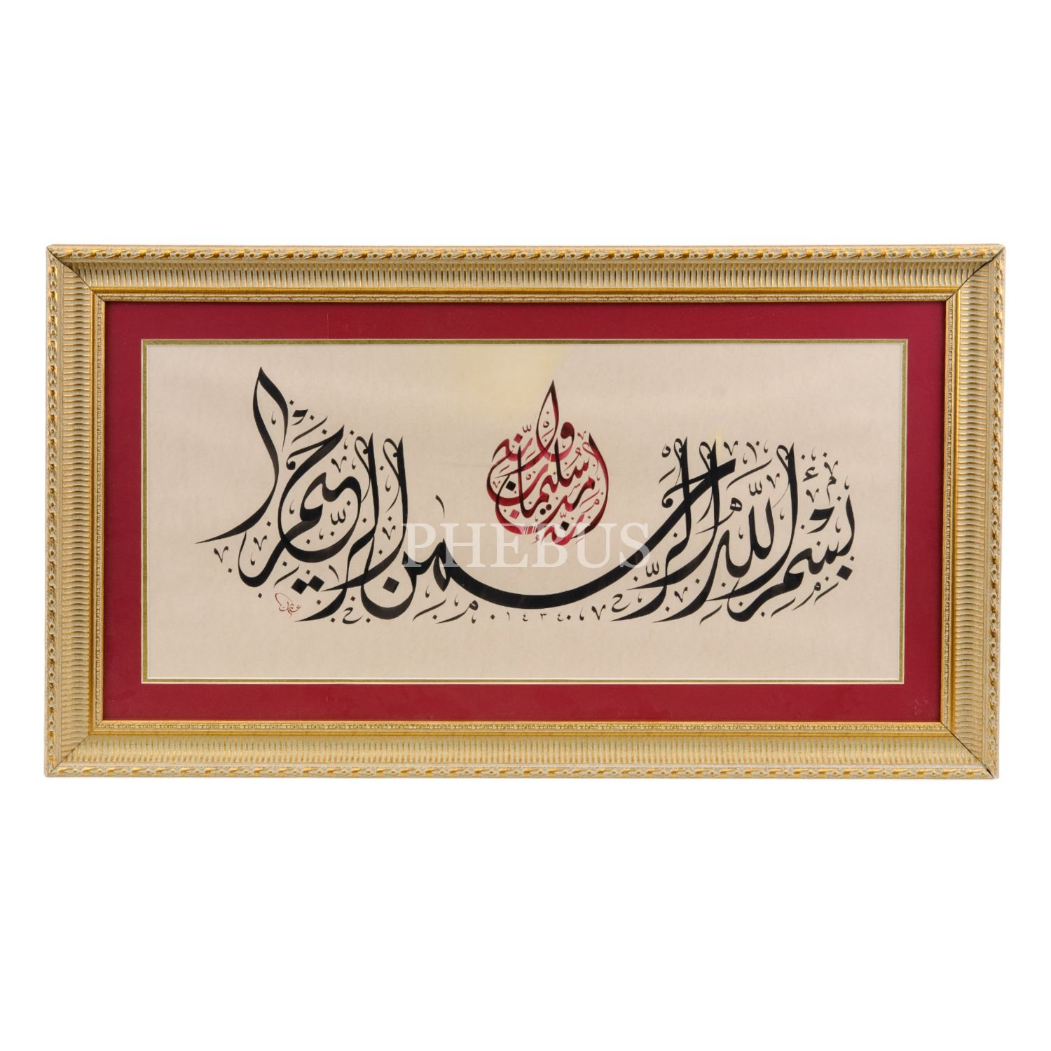 Fethi ketebeli kitâbe tarzı zırnık celî sülüs yazı, 1373 tarihli, yazı ölçü: 57x30 cm, 68x40 cm...