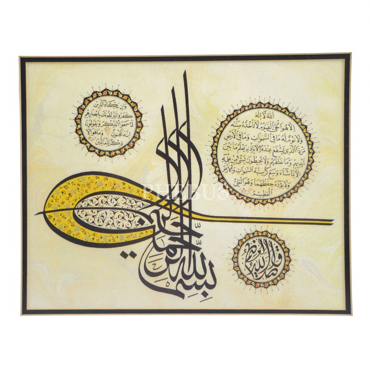 Tuğra formunda besmele ve nesih yazılı levha, yazı ölçü: 25x20 cm, 32x27 cm...