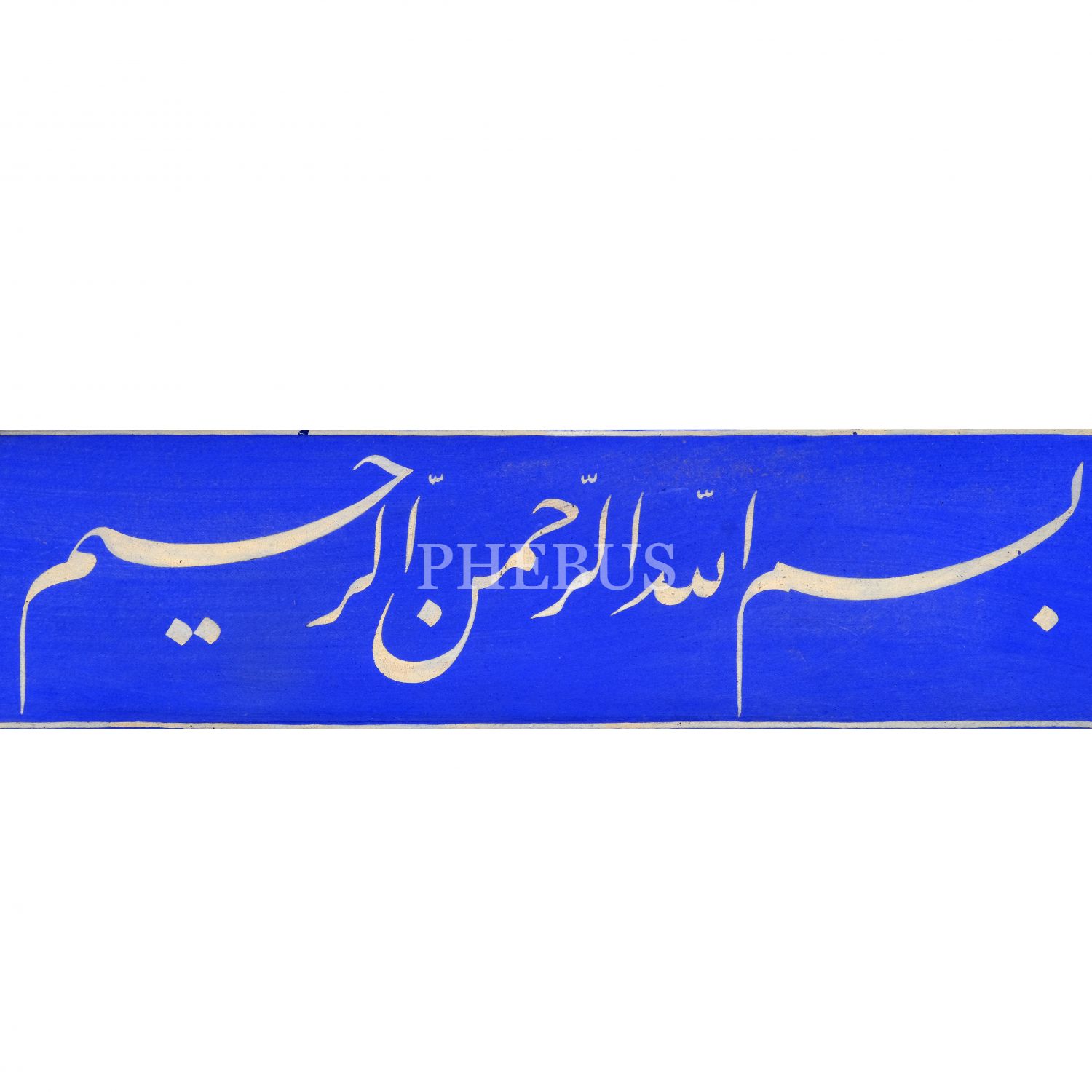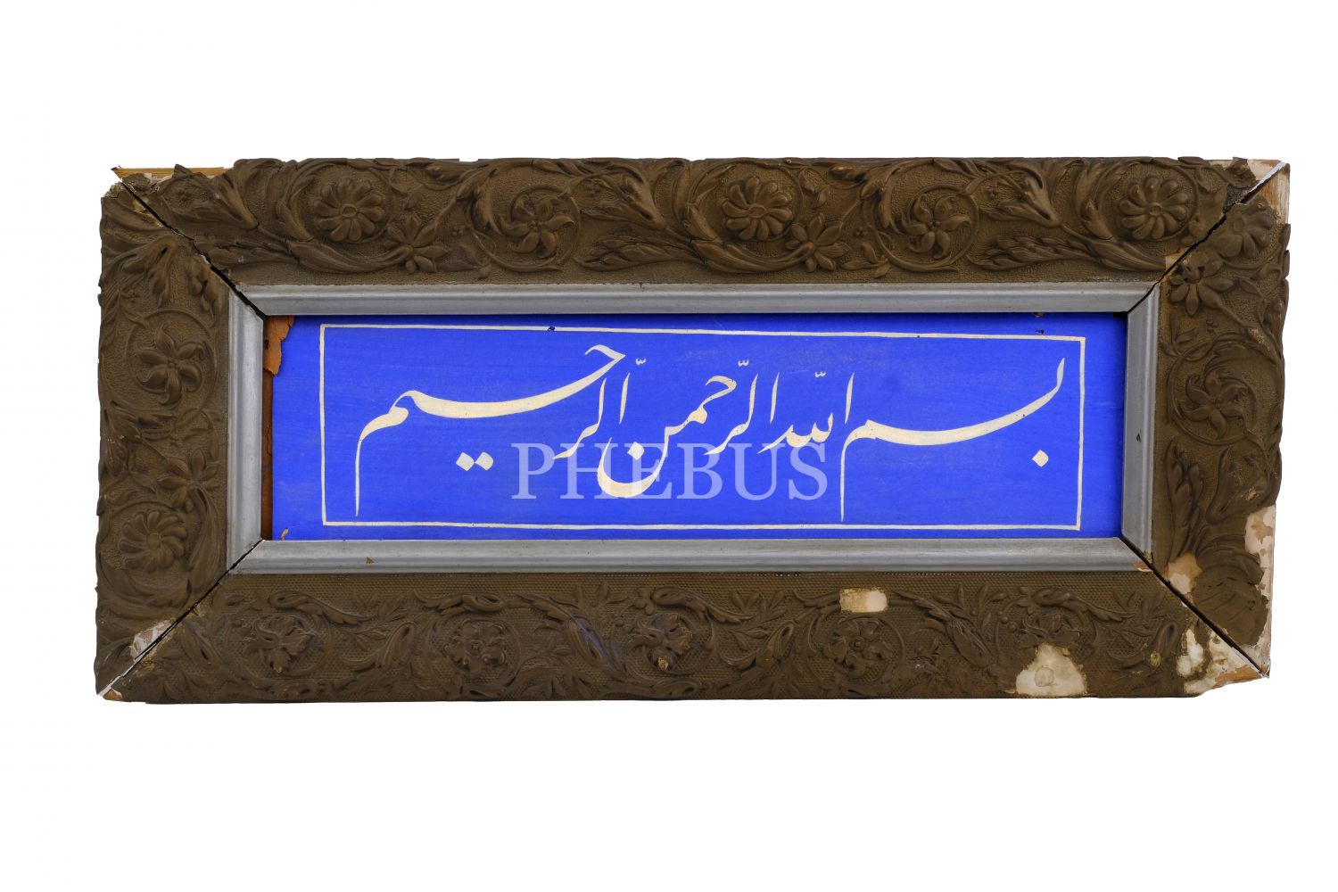 Zırnıkla yazılmış talik besmele, yazı ölçü: 43x11 cm, çerçeve ölçü: 66x31 cm...