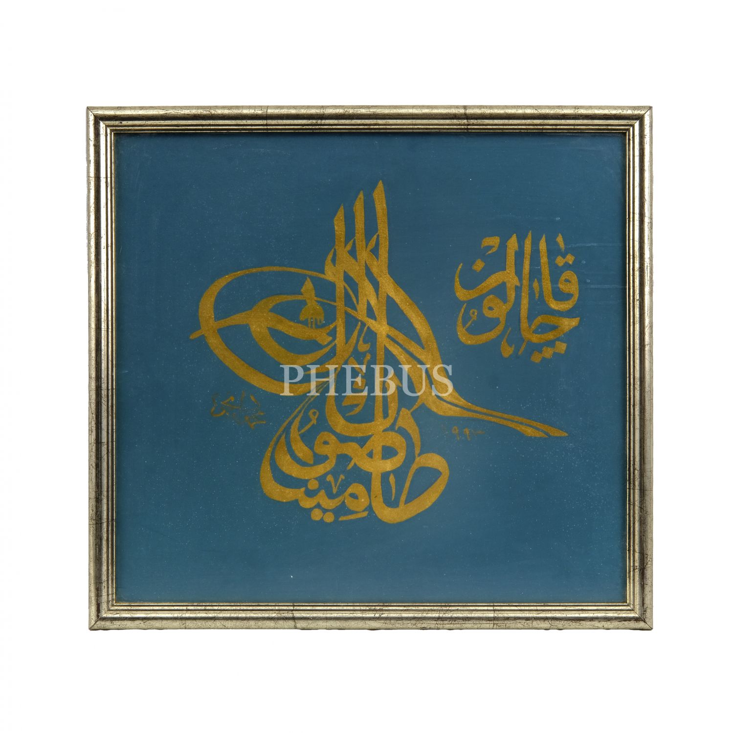 Mahmud Öncü ketebeli tuğra formunda isim, 1993 tarihli, çerçeve içi ölçü: 43x40 cm...