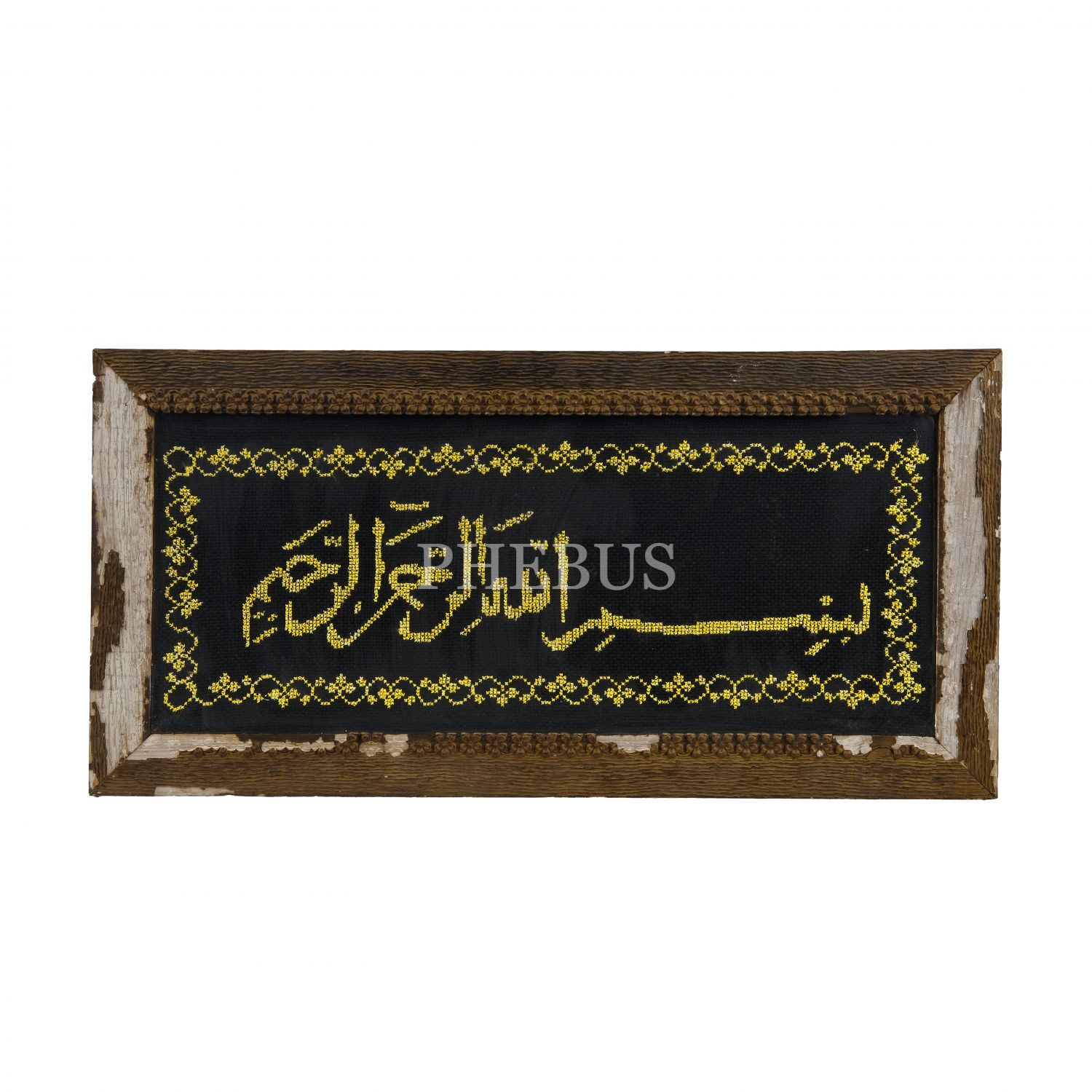 Kanaviçe kumaş üzerinde sülüs besmele, çerçeve içi ölçü: 63x26 cm...