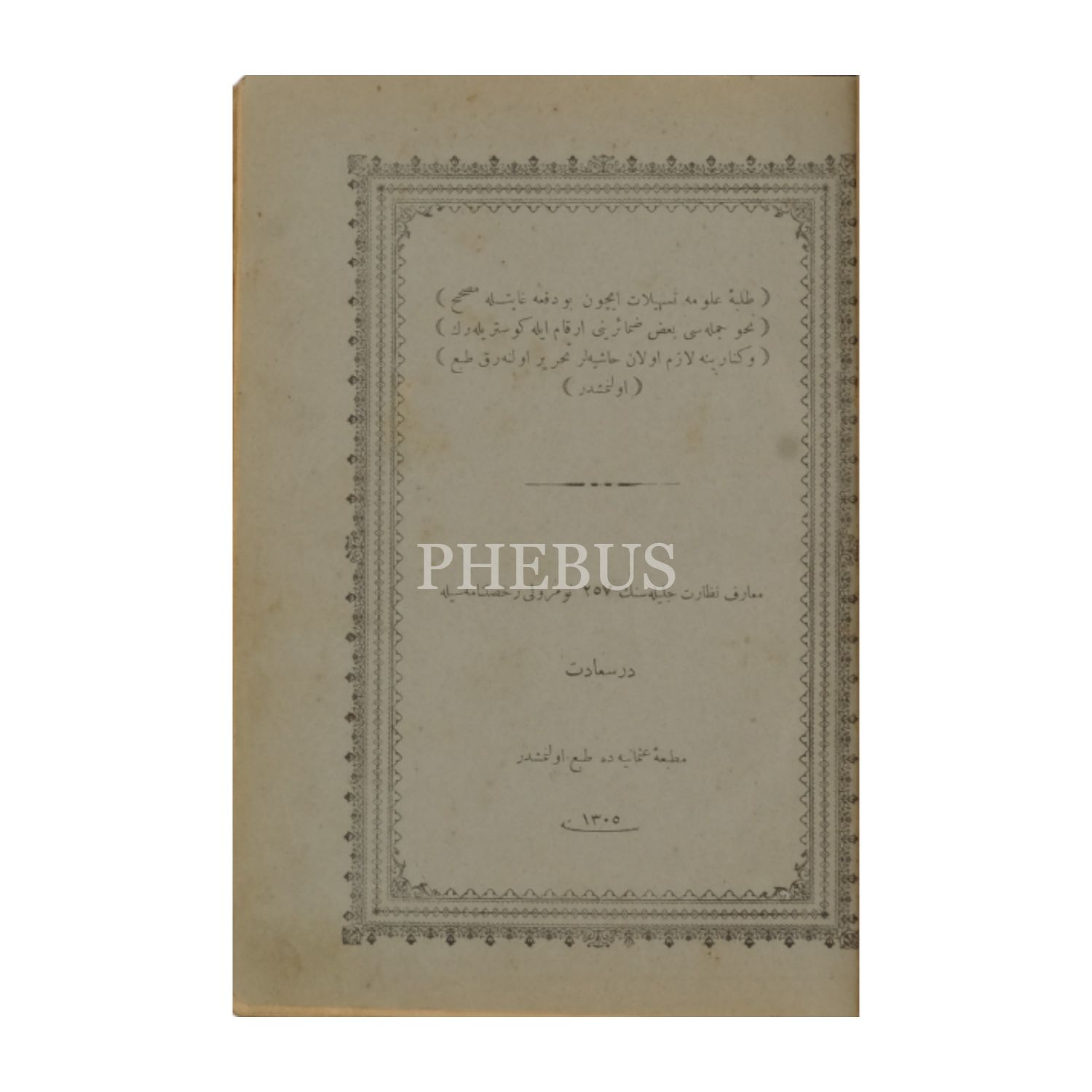 KÂFİYE METNİ, İbni Hâcib, 1305, Matbaa-i Osmâniye, 82 sayfa, 16x22 cm...