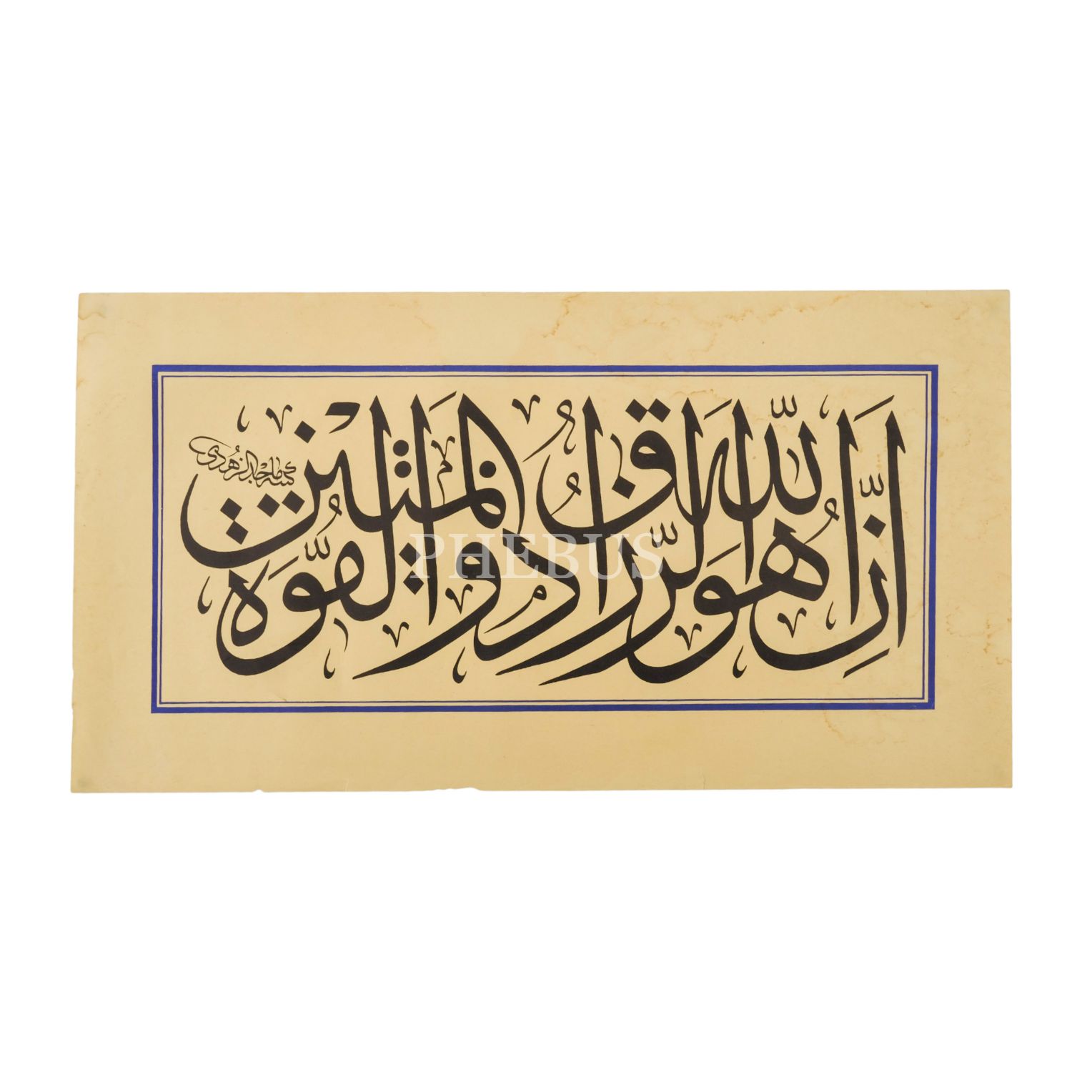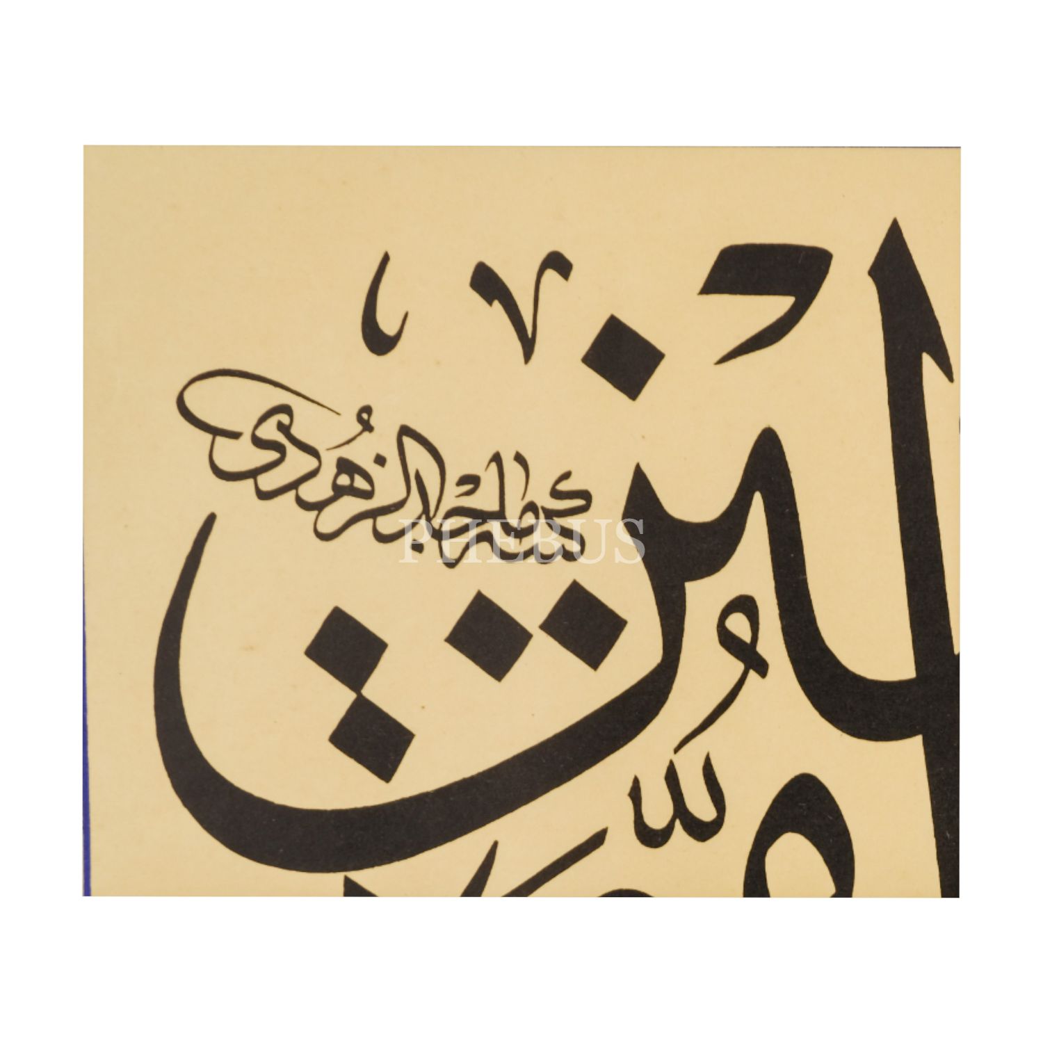 Mâcid ez-Zühdü ketebeli baskı celî sülüs istif âyet, yazı ölçü: 35x15 cm, kağıt ölçü: 43x23 cm...