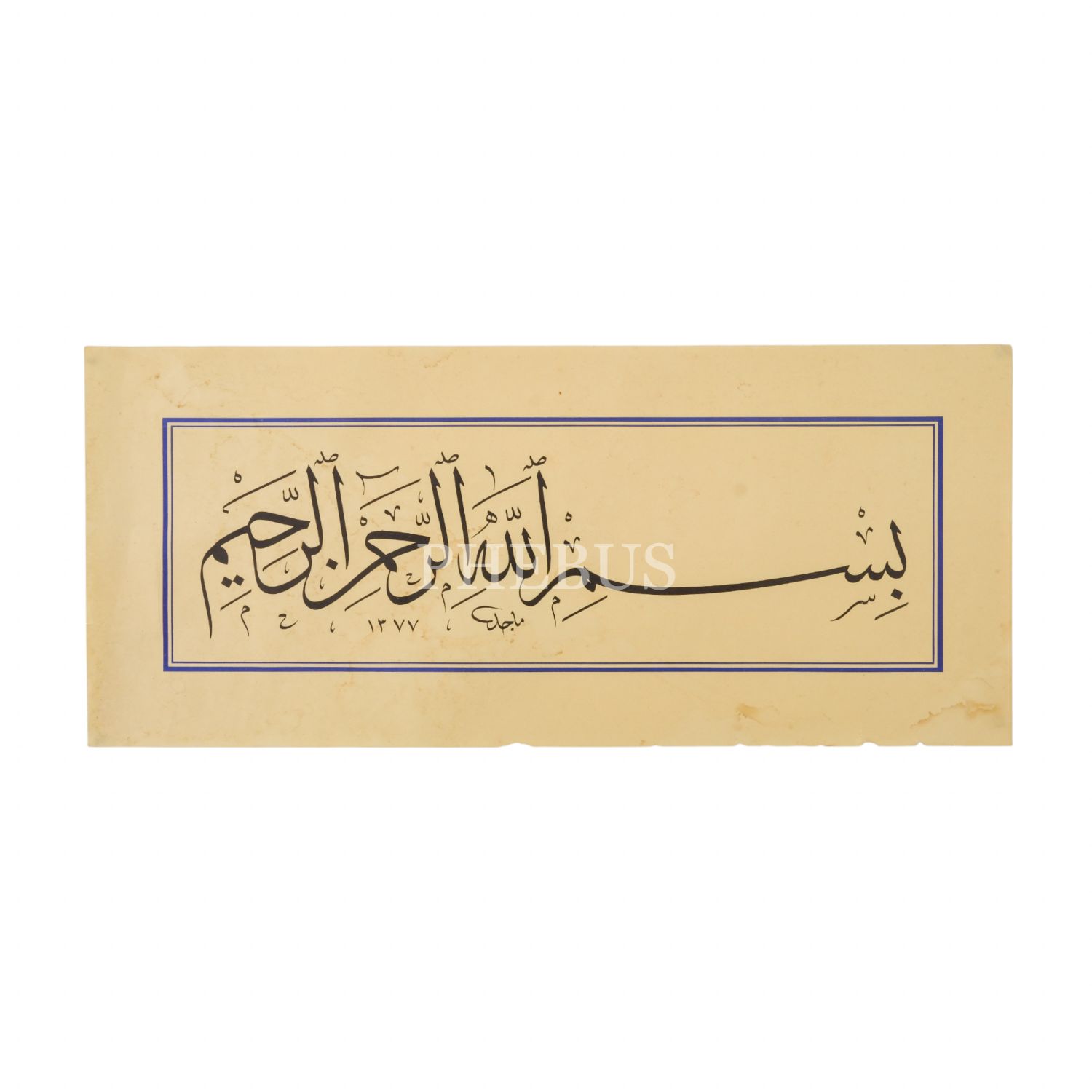 Mâcid (Ayral) hattı baskı sülüs besmele, yazı ölçü: 36x11 cm, kağıt ölçü: 43x18 cm...