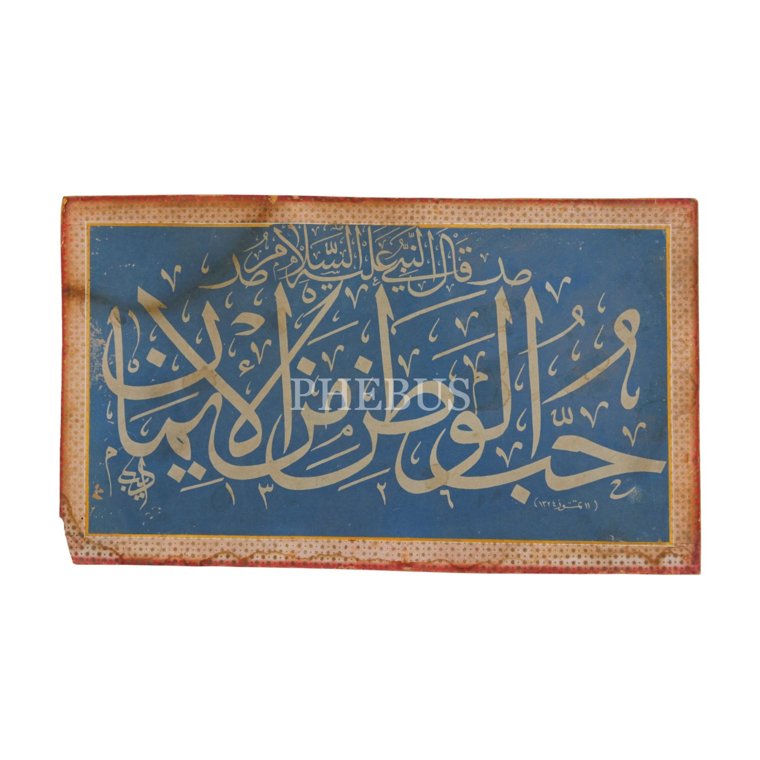 Edib ketebeli baskı sülüs hadis-i şerif, mukavva ölçü: 40x23 cm...
