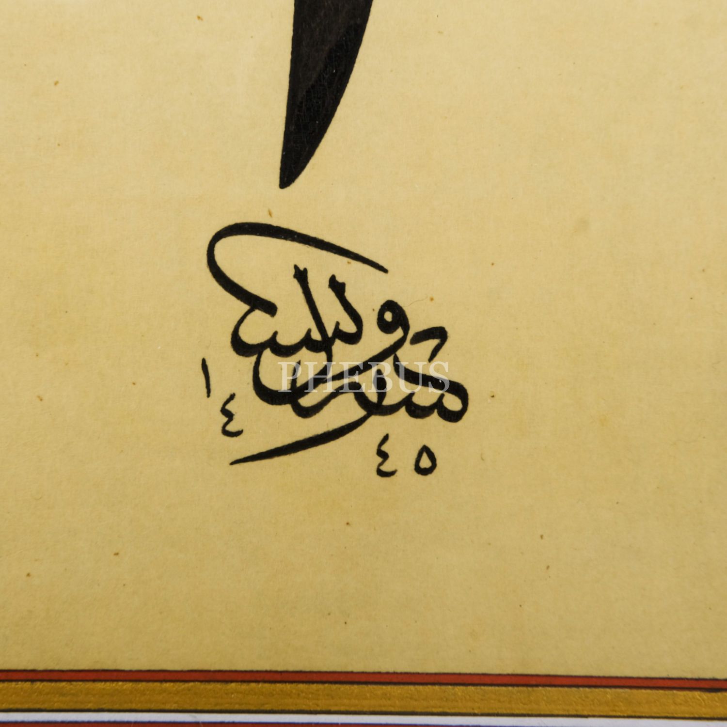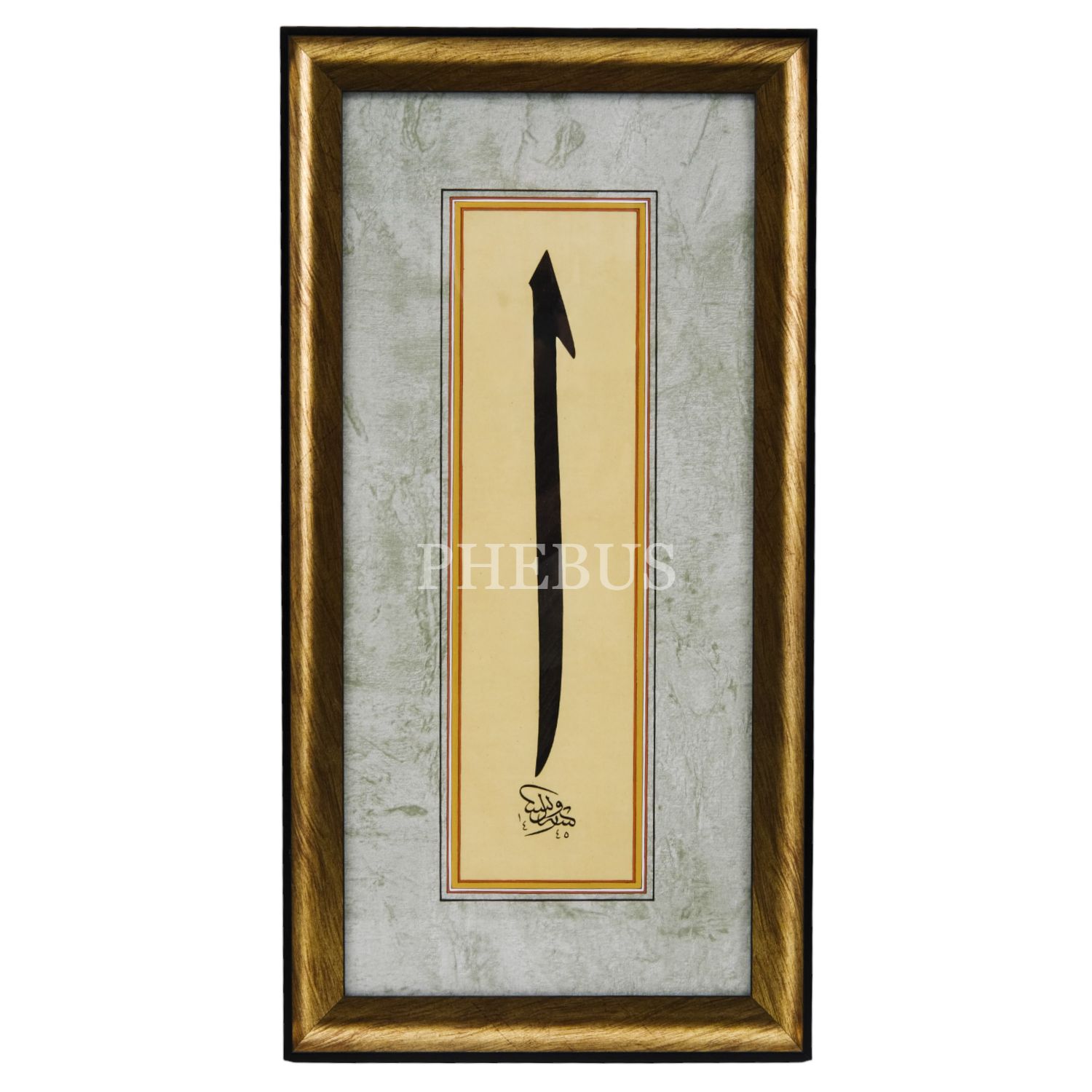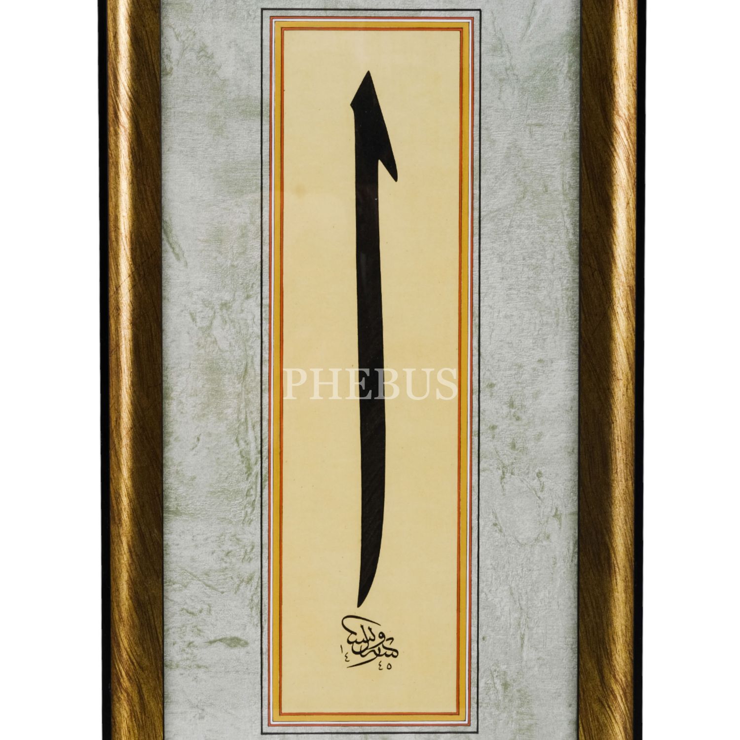Veysel Kucuras ketebeli celi sülüs "Elif", 1445 tarihli, çerçeve ölçü: 48x25 cm...