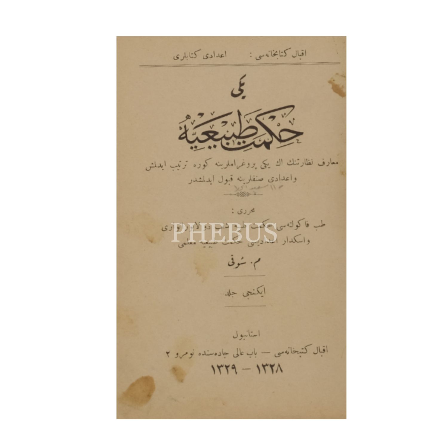 YENİ HİKMET-İ TABİİYE, 2. cilt, M. Şevki, 1328-29, Şems Matbaası, 504 sayfa, 13x19 cm...