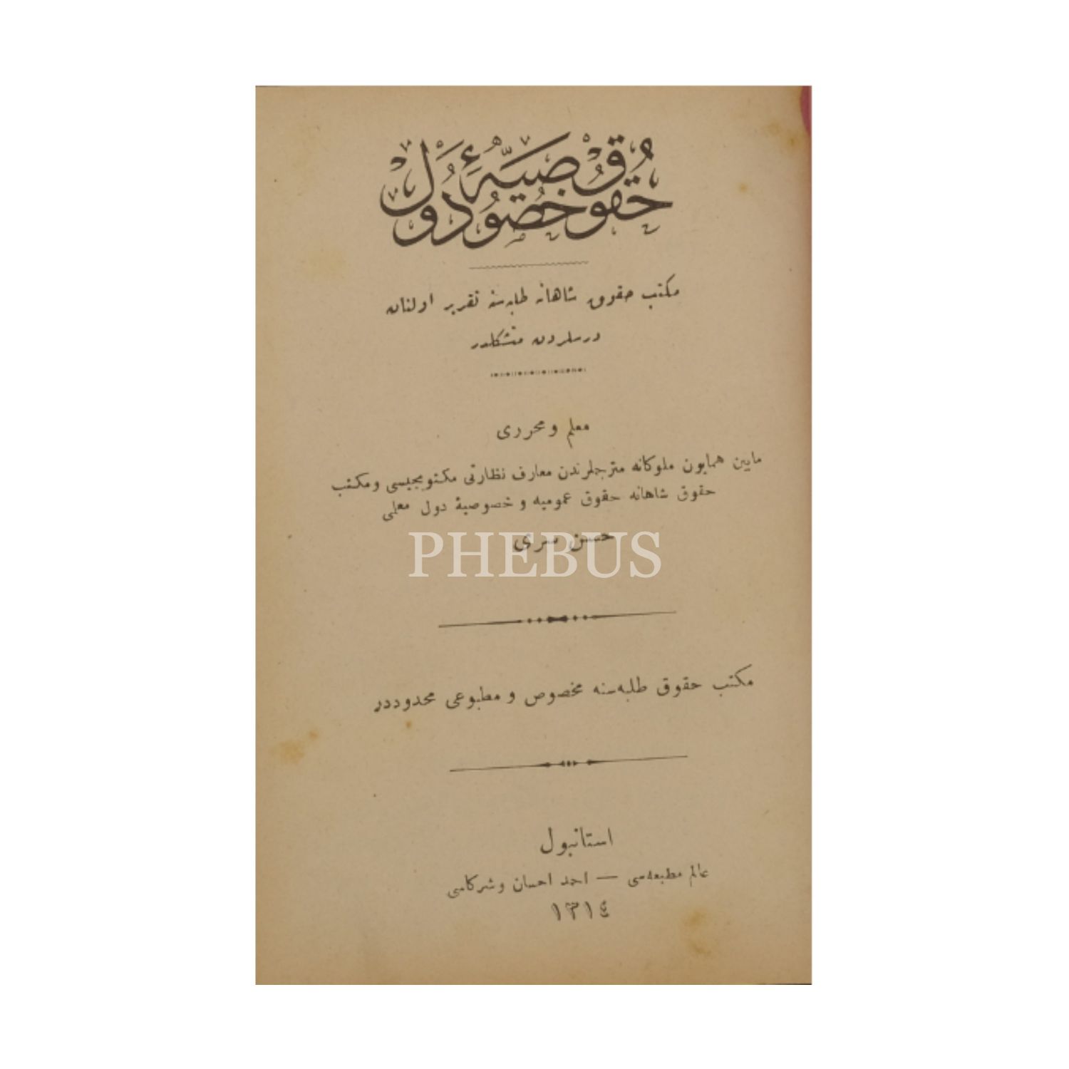 HUKÛK-İ HUSÛSİYE-İ DÜVEL, Hasan Sırrı, 1314, Âlem Matbaası, 186 sayfa, 12x18 cm...