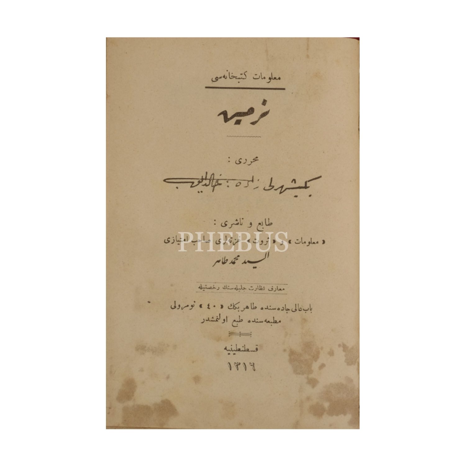 NERMİN, Yenişehirlizâde Halid Eyüb, 1316, Tahir Bey Matbaası, 182 sayfa, 11x16 cm...