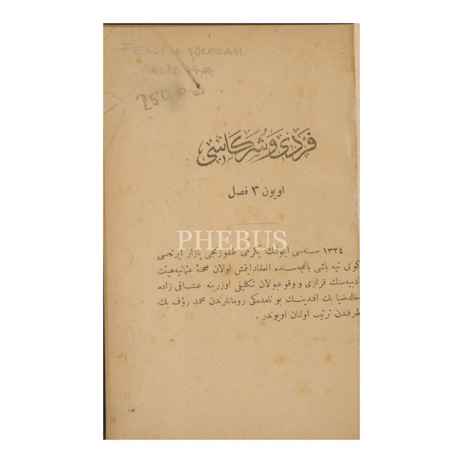 FERDİ VE ŞÜREKÂSI, oyun, 1325, Hilâl Matbaası, 114 sayfa, 13x19 cm...