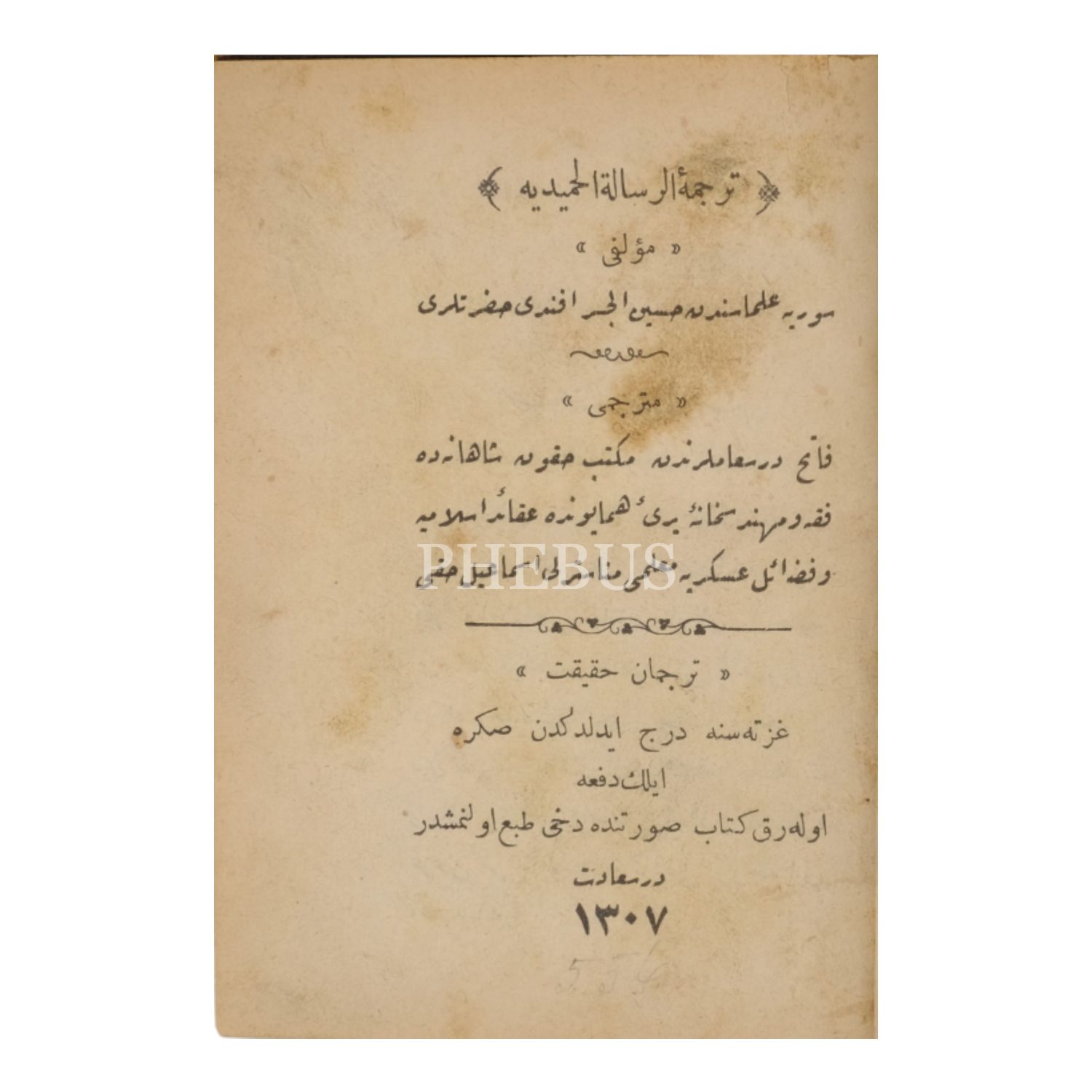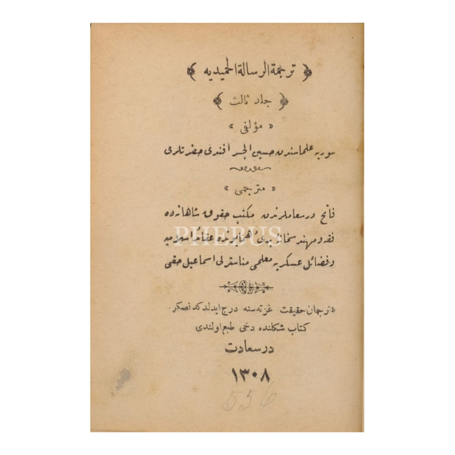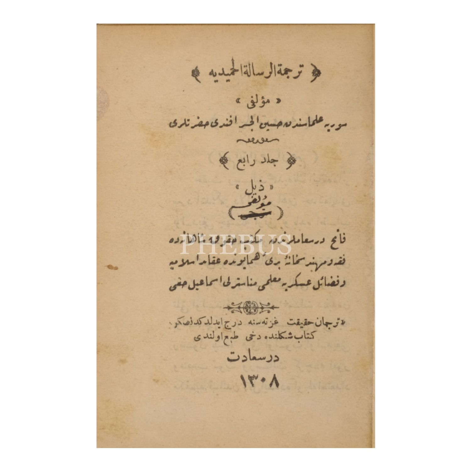 TERCÜMETÜ´R-RİSÂLETİ´L-HAMÎDİYE, 4 cilt, Hüseyin el-Cisr, çeviren: İsmail Hakkı, 1307, 718+676+737+797 sayfa, 10x14 cm...