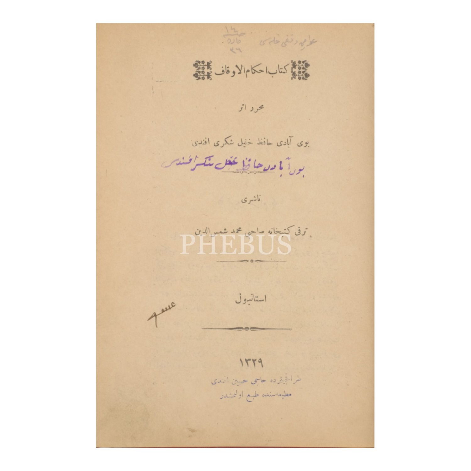KİTÂBÜ AHKÂMİ´L-EVKÂF, Boyâbâdî Hafız Halil Şükrü, 1329, Hacı Hüseyin Efendi Matbaası, 235 sayfa, 14x21 cm...