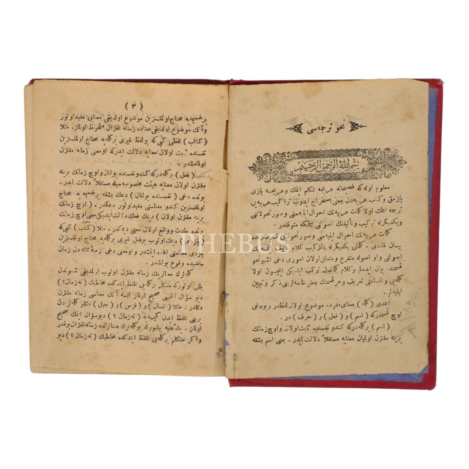 Kırmızı mükâfat cildinde Osmanlı Türkçesi ile Arapça nahiv kitabı.