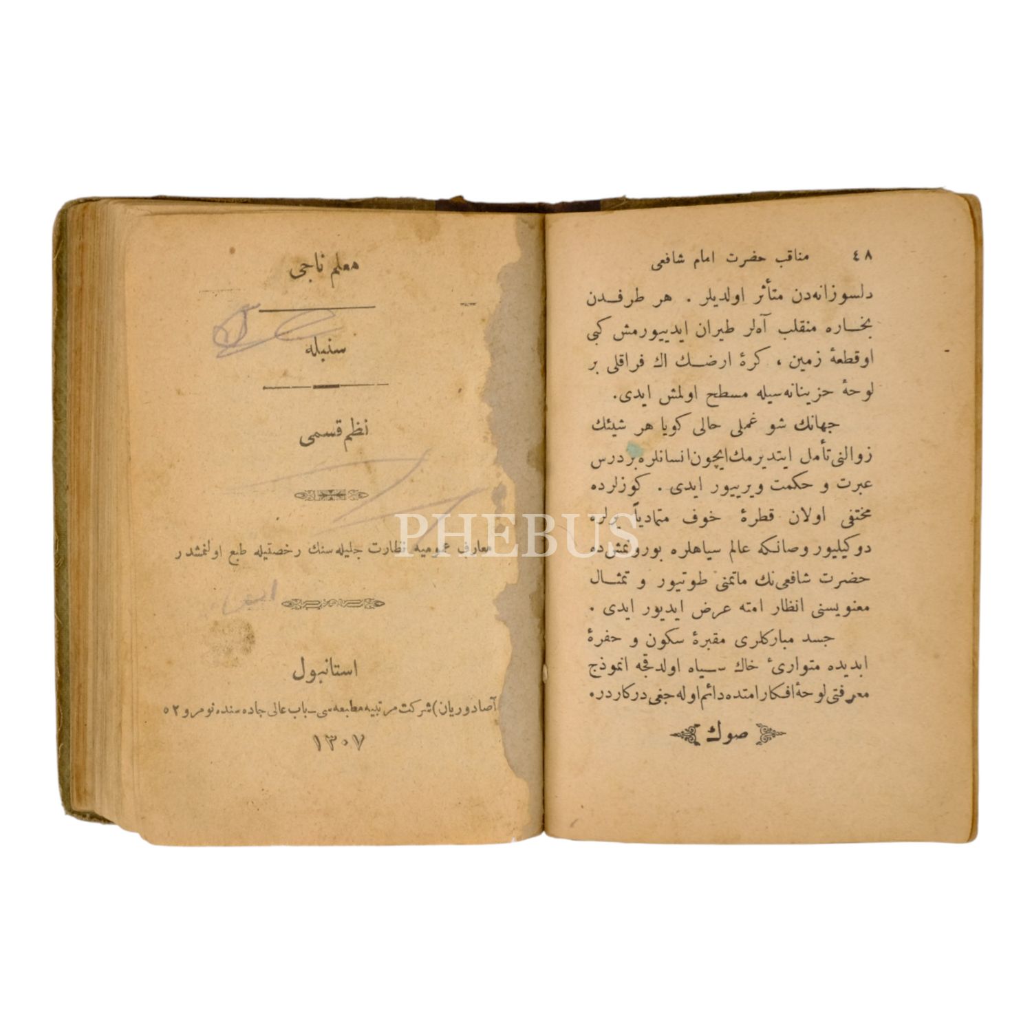 MENÂKIB-I HAZRETİ İMAM ŞÂFİÎ (YAHUD BİR HATIRA), Hilmizade İbrahim, 1318, Şirket-i Mürettibiye Matbaası, 48 sayfa.