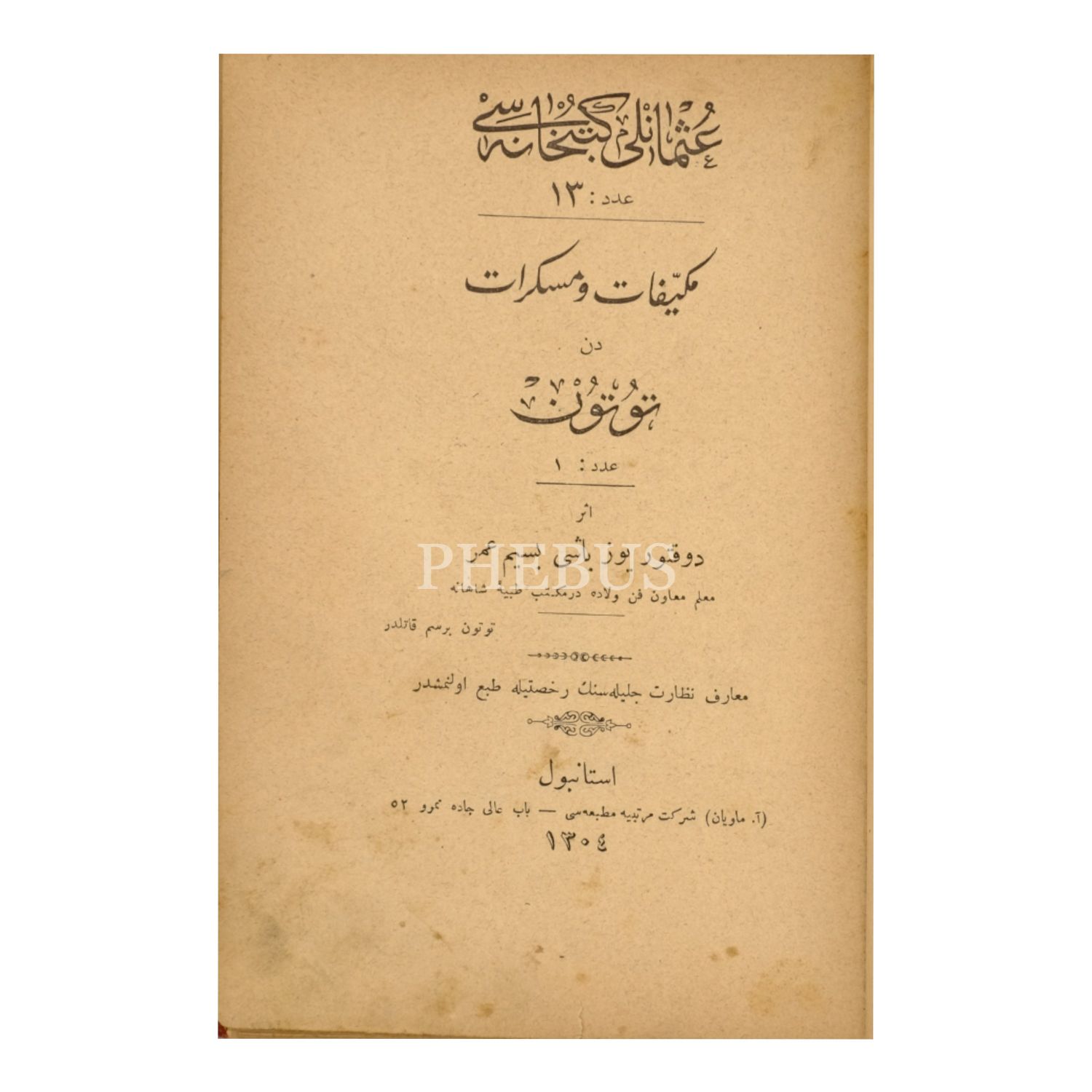 MÜKEYYİFÂT ve MÜSKİRÂTTAN TÜTÜN, Doktor Yüzbaşı Besim Ömer, 1304, Şirket-i Mürettibiye Matbaası, 128 sayfa, 12x18 cm...