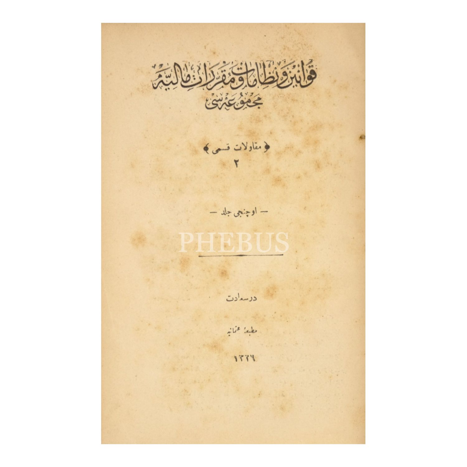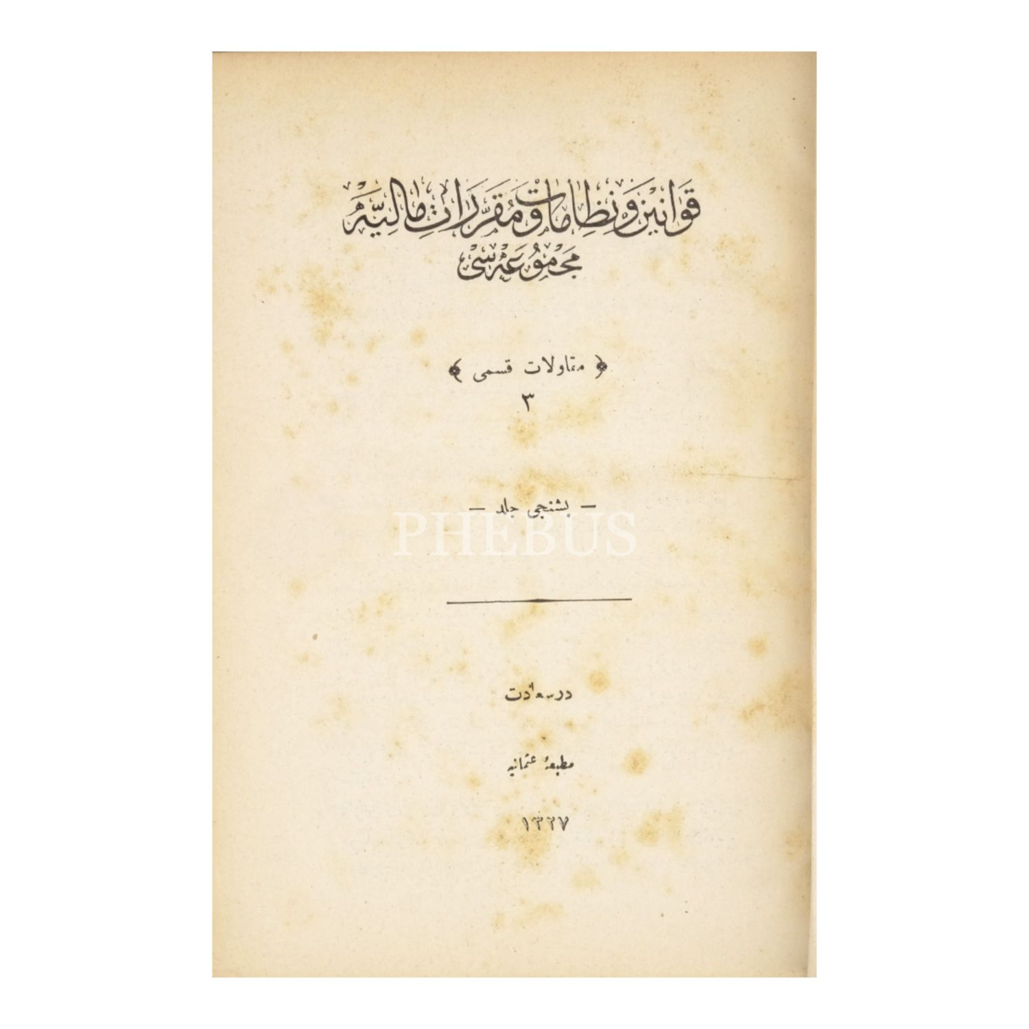 KAVÂNÎN-İ MÂLİYE MECMÛASI, tam takım 3 cilt, 1327, Matbaa-i Osmâniye, 319+275+455+270+310+270 sayfa, 17x23 cm...