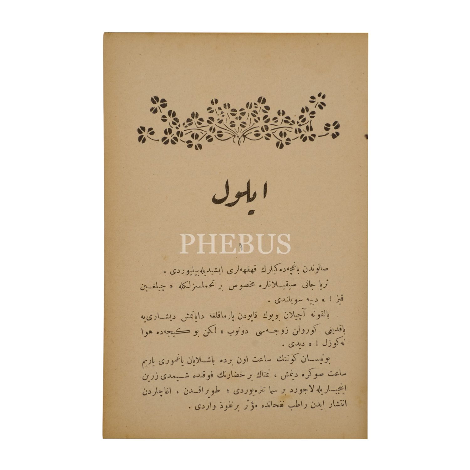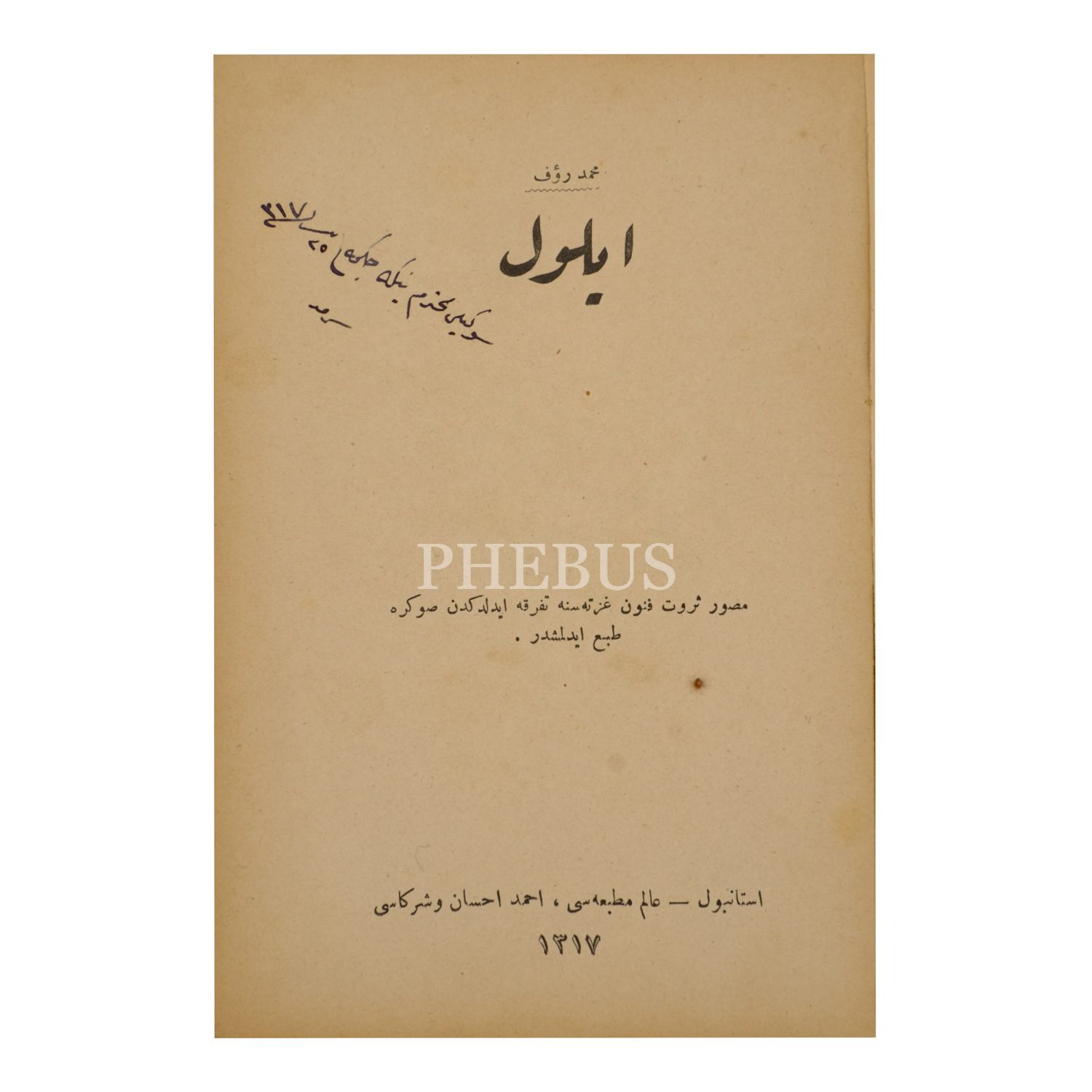 EYLÜL, Mehmed Rauf, 1317, Âlem Matbaası, 392 sayfa, 12x18 cm...