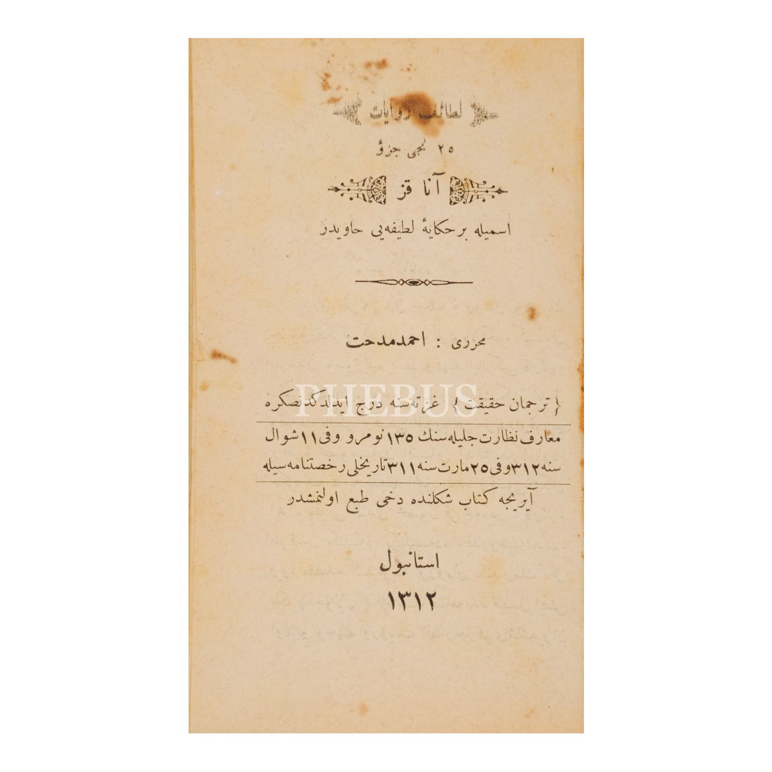 ANA KIZ, Ahmed Midhat, 1312, 101 sayfa, 11x17 cm...