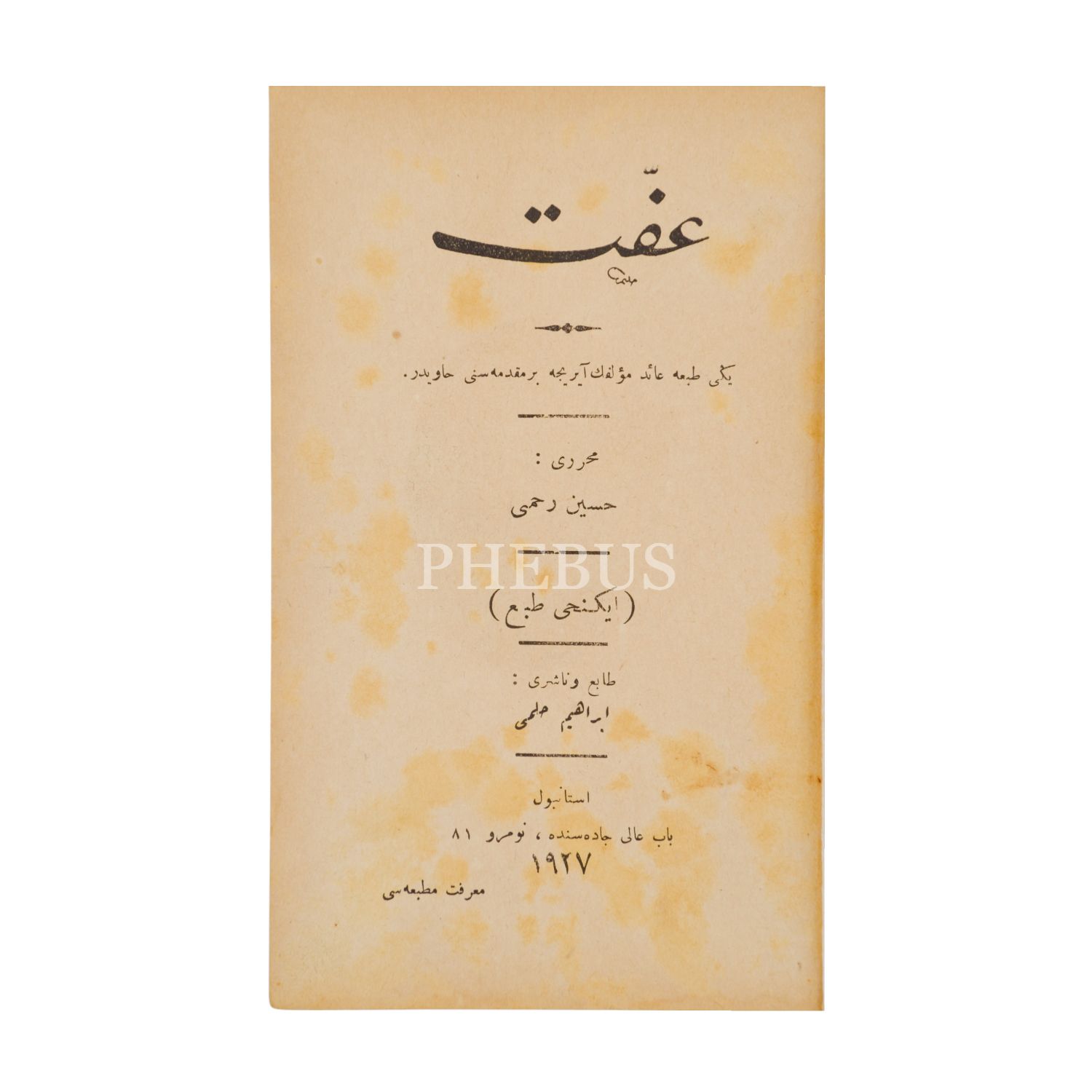 İFFET, Hüzeyin Rahmi, 1927, Marifet Matbaası, 258 sayfa, 12x18 cm...