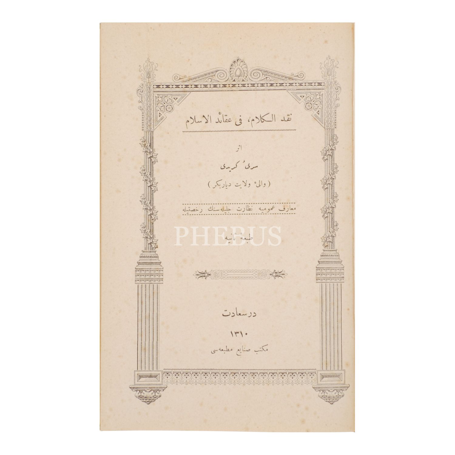 NAKDÜ´L-KELÂM fî AKÂİDİ´L-İSLÂM, Giritli Sırrı, 1310, Mekteb-i Sanayi Matbaası, 355 sayfa, 15x20 cm...