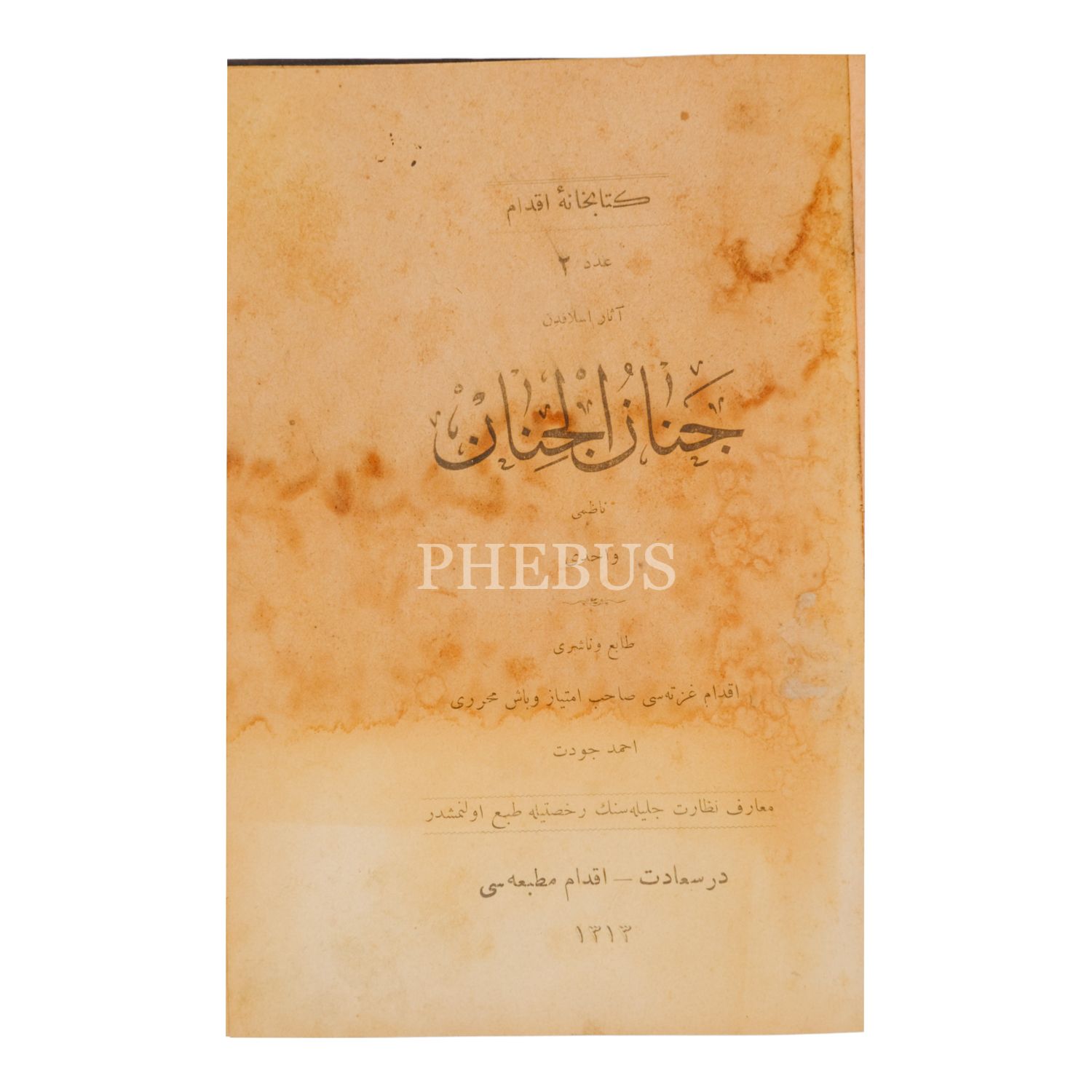 CENÂNÜ´L-CİNÂN, Vâhidî, 1313, İkdam Matbaası, 128+405 sayfa, 14x20 cm...