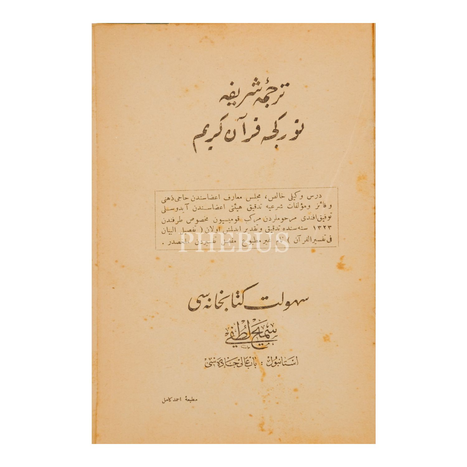 (TERCÜME-İ ŞERÎFE) TÜRKÇE KUR´ÂN-I KERİM, 1323, Ahmed Kâmil Matbaası, 771 sayfa, 14x20 cm...