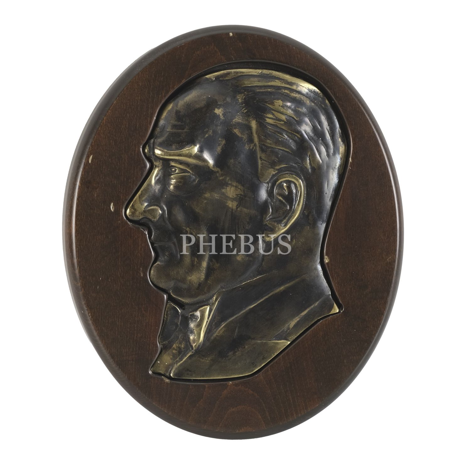 Mustafa Kemal Atatürk rölyefi, metal malzeme, ahşap muhafazalı, rölyef 17x24 cm, muhafaza 26x32 cm...