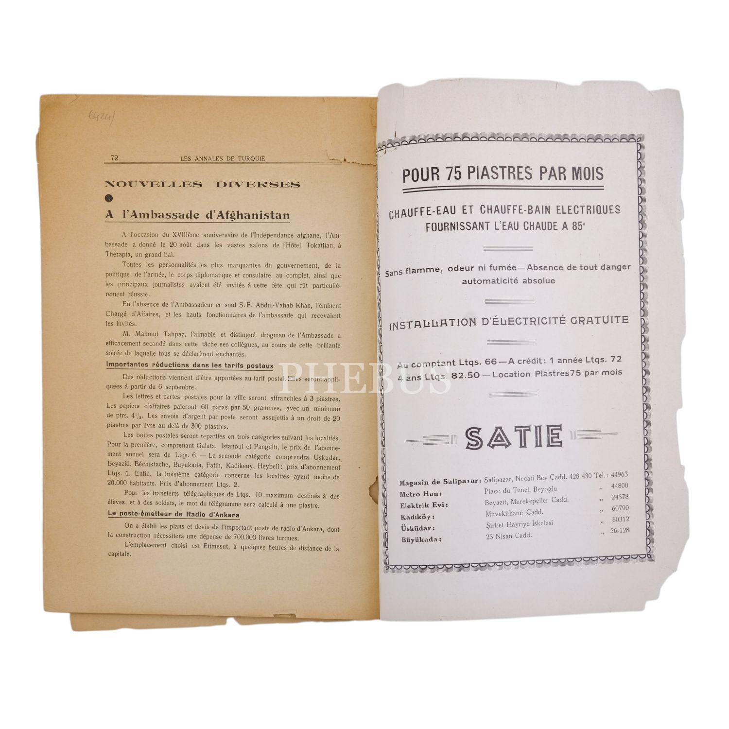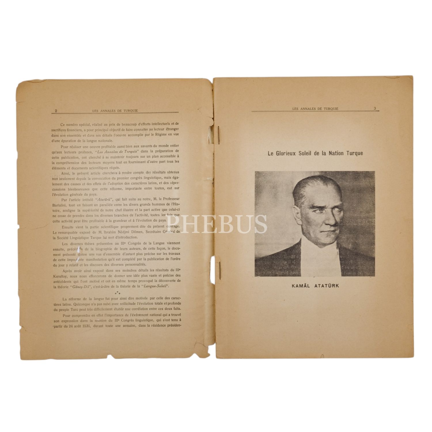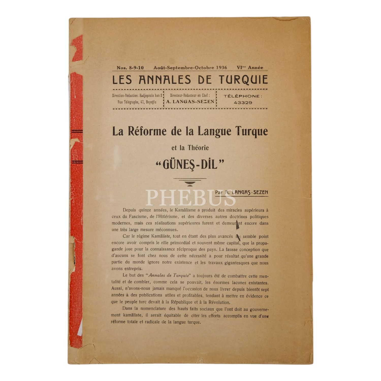 LES ANNALES DE TURQUIE dergisinin, Güneş Dil Teorisi´ni konu alan Ağustos 1936 tarihli nüshası, 20x28 cm...