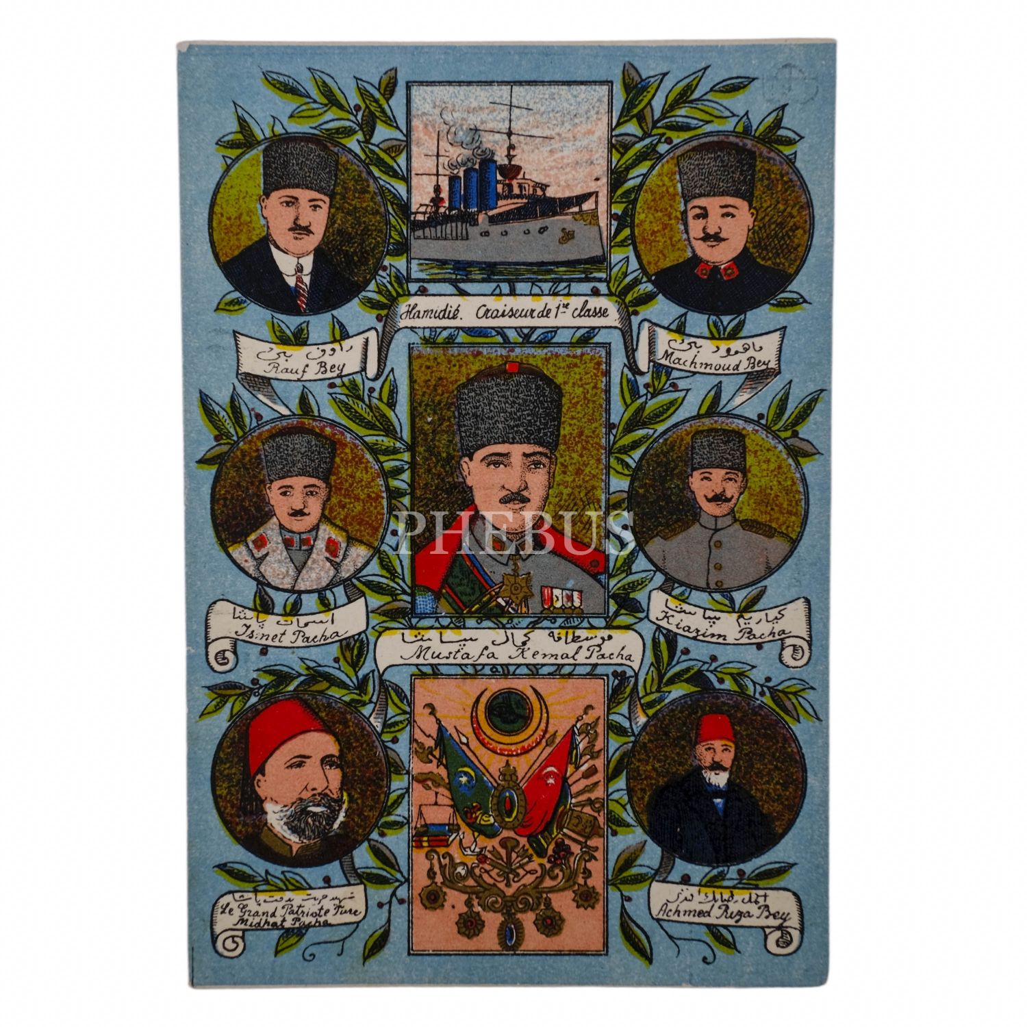 Mustafa Kemal Atatürk, İsmet İnönü, Kazım Karabekir, Rauf Orbay, Mithat Paşa, Ahmed Rıza Bey ve Mahmud Bey´in portrelerine yer verilen kartpostal, 14x9 cm...