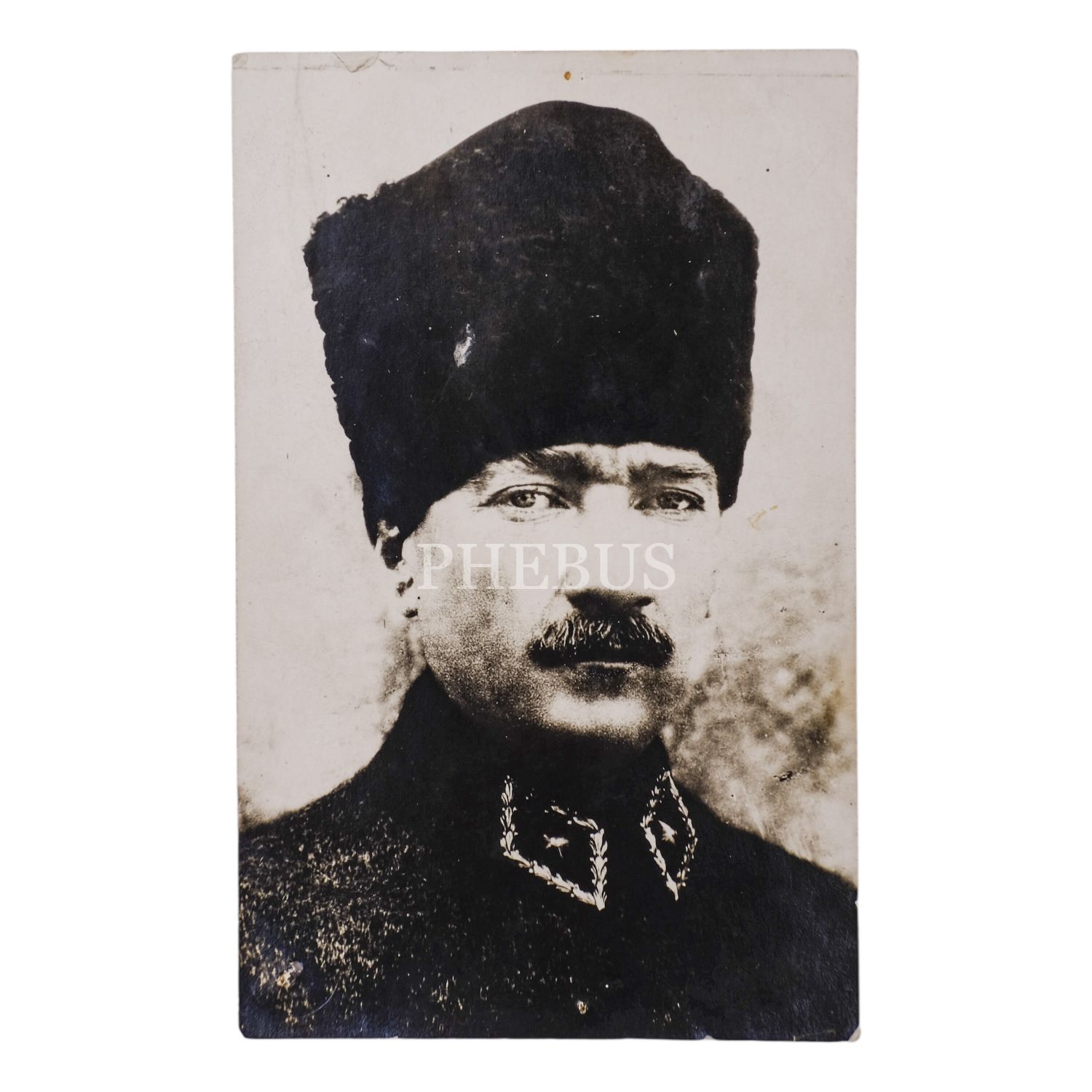 Mustafa Kemal Atatürk´ün Sakarya Meydan Muharebesi döneminde çekilmiş kalpaklı ve mareşal üniformalı fotoğrafı, "Fatih Park karşısında Anadolu Fotoğrafhanesi, 9x14 cm...