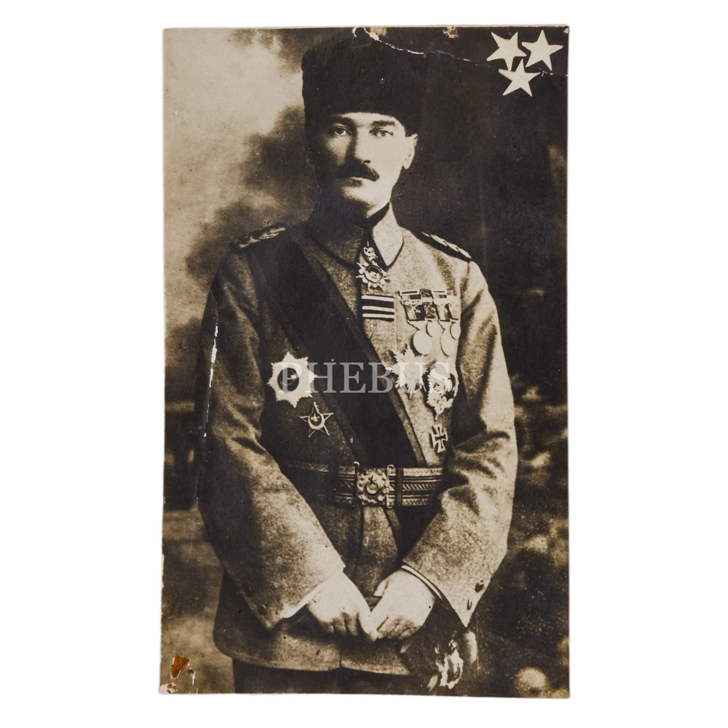 Mustafa Kemal Atatürk´ün madalya ve üniformalarıyla çekilmiş fotoğrafı, 8x13 cm...
