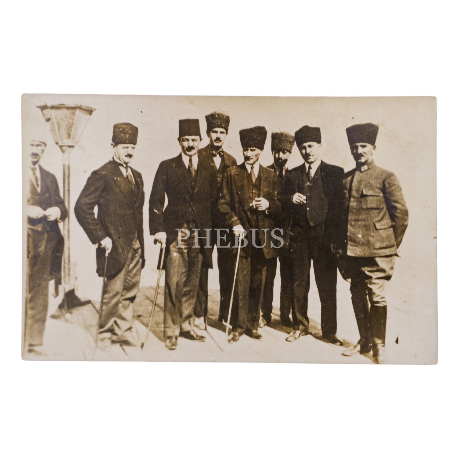 Mustafa Kemal Atatürk ve maiyeti, Ankara Antlaşması´nı imzalayan Fransız diplomat Henry Franklin-Bouillon´u karşılamak üzere İzmir Göztepe İskelesi´nde, 27 Eylül 1922, 14x9 cm...