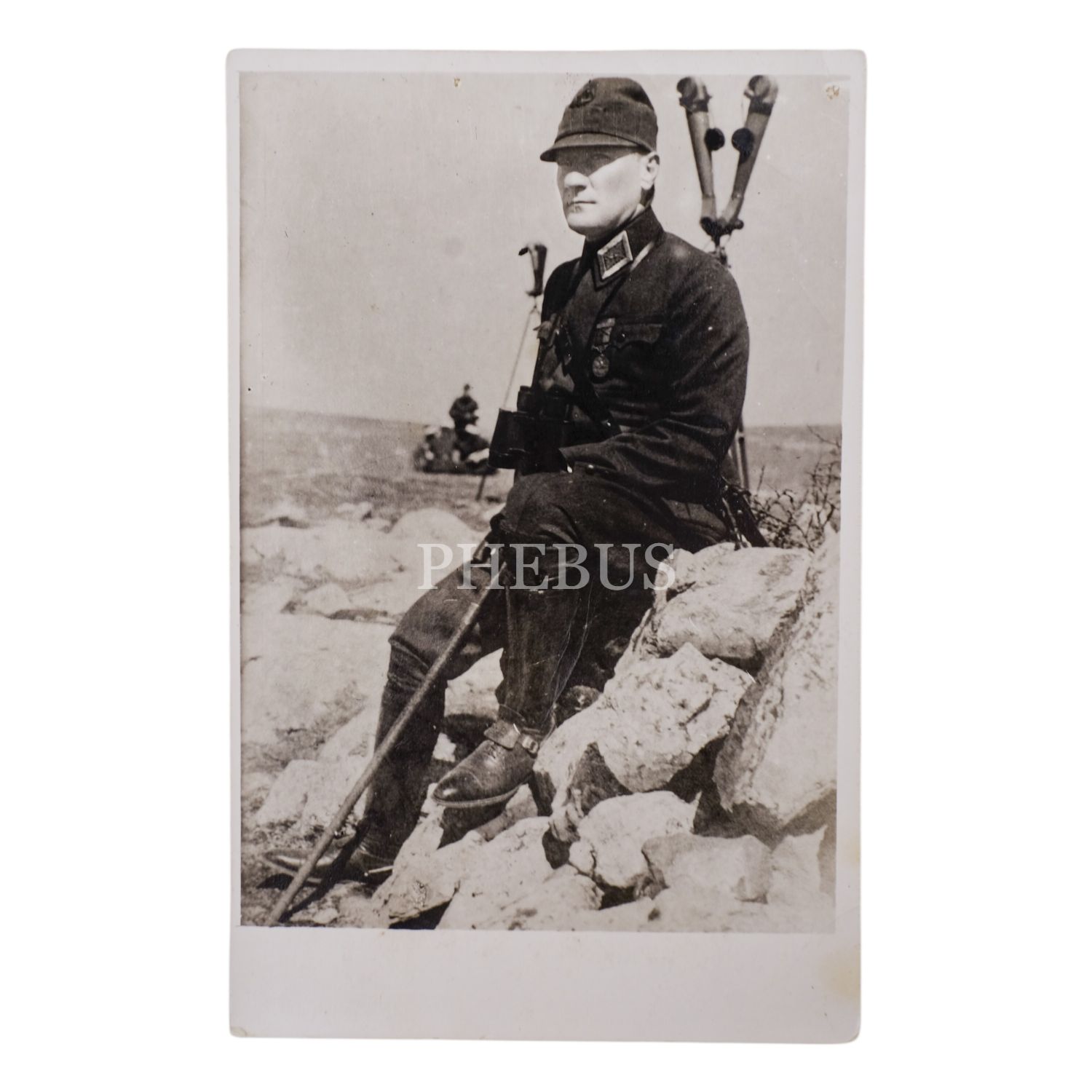 Mustafa Kemal Atatürk, Ankara´da düzenlenen 1. Ordu Manevraları´nda, askeri üniformasıyla sahra dürbünü önünde, 8-14 Ekim 1926, 9x14 cm...